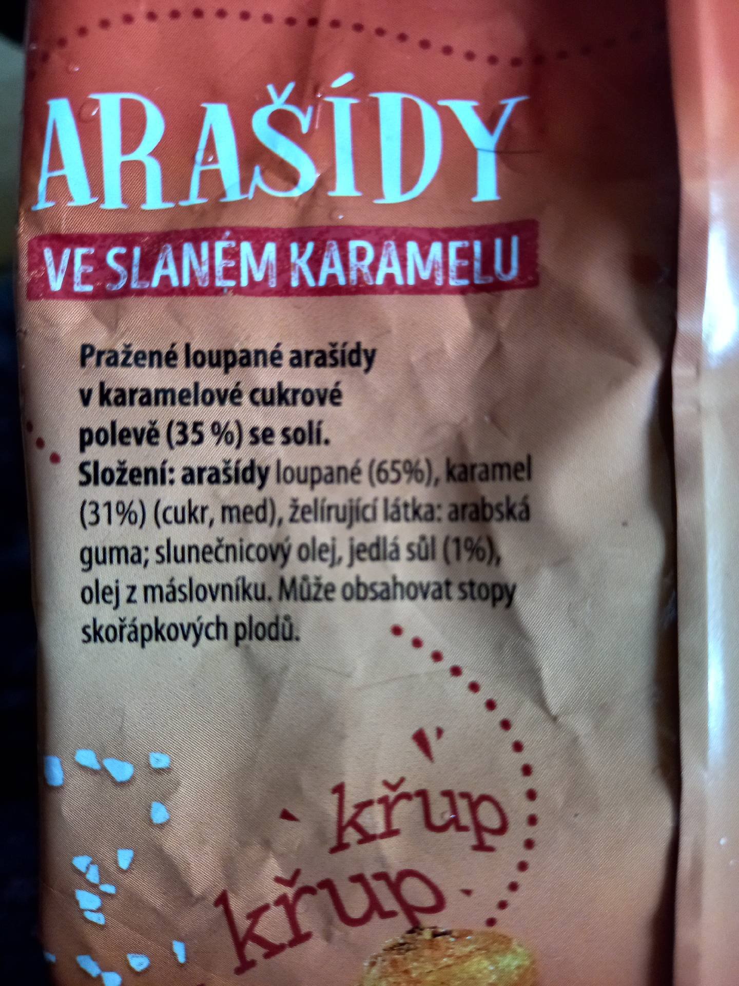 Pražené loupané arašídy v karamelové cukrové polevě 35% se solí.