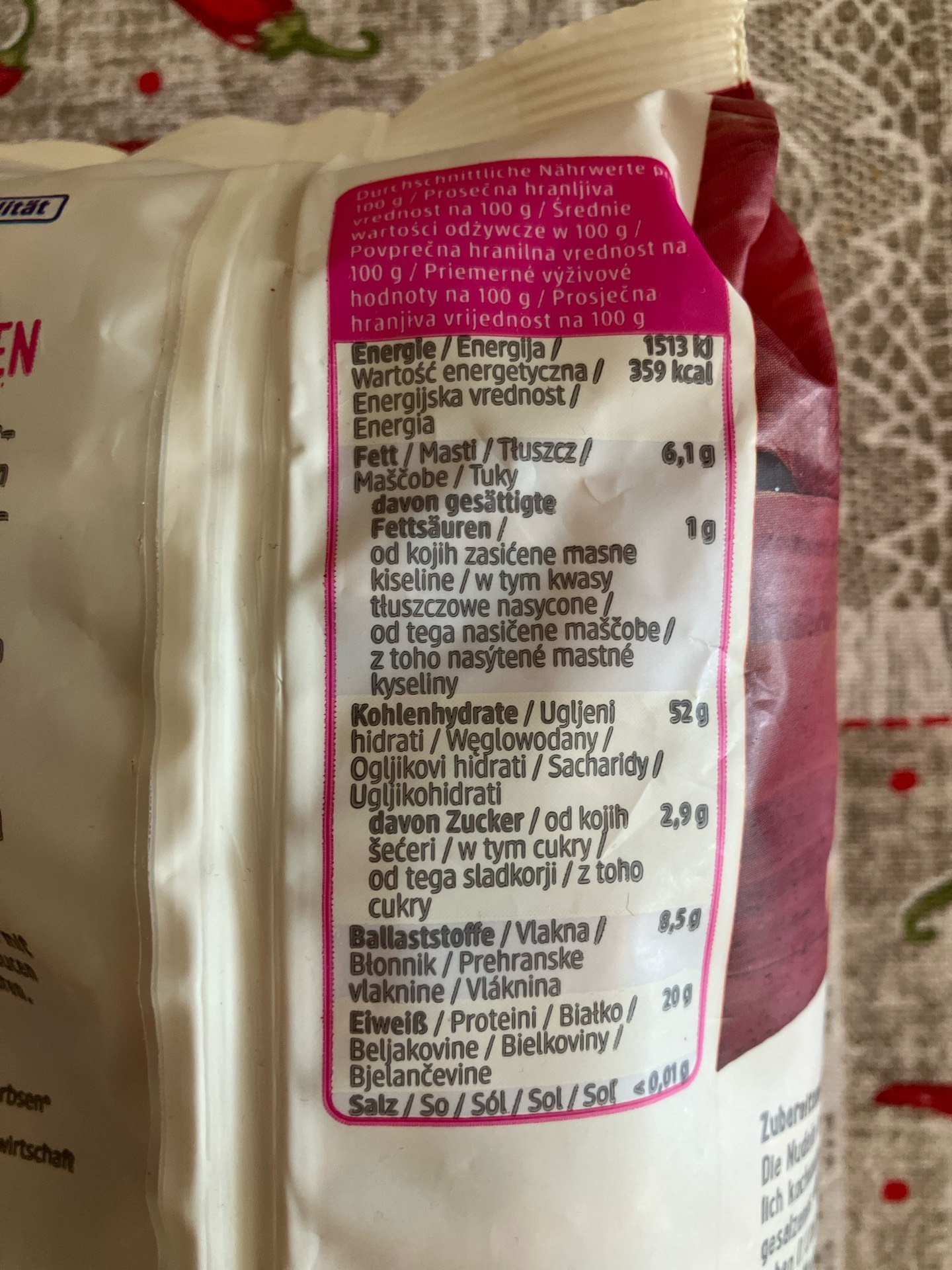 | Energie | 362 kcal | 1 085 kcal | 17 % |