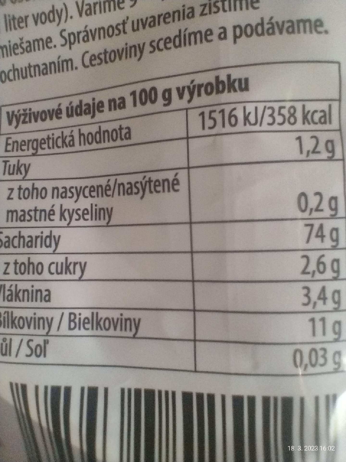 Nutriční hodnoty
