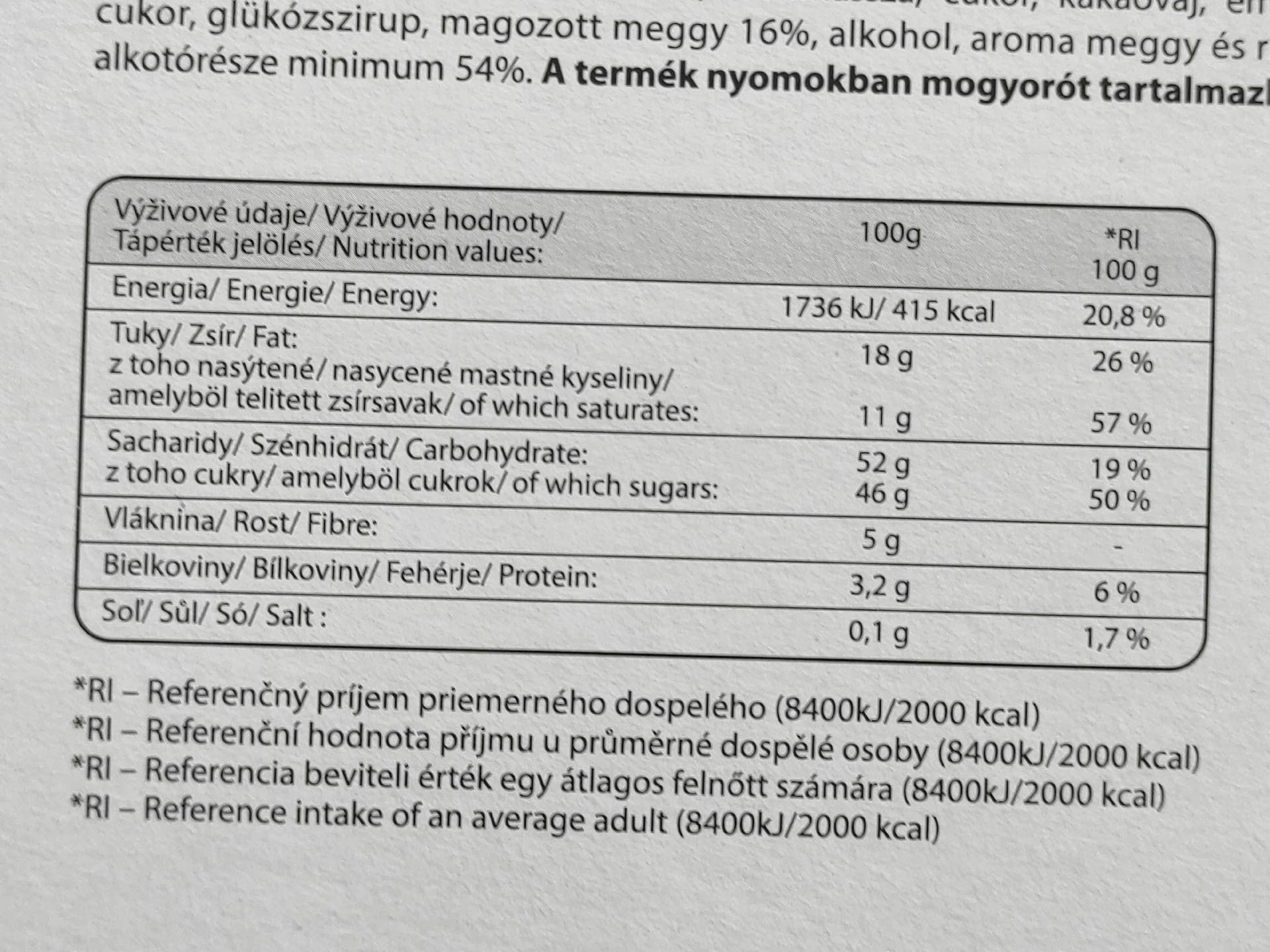 Obsah kakaové sušiny v hořké čokoládě min. 54%.
