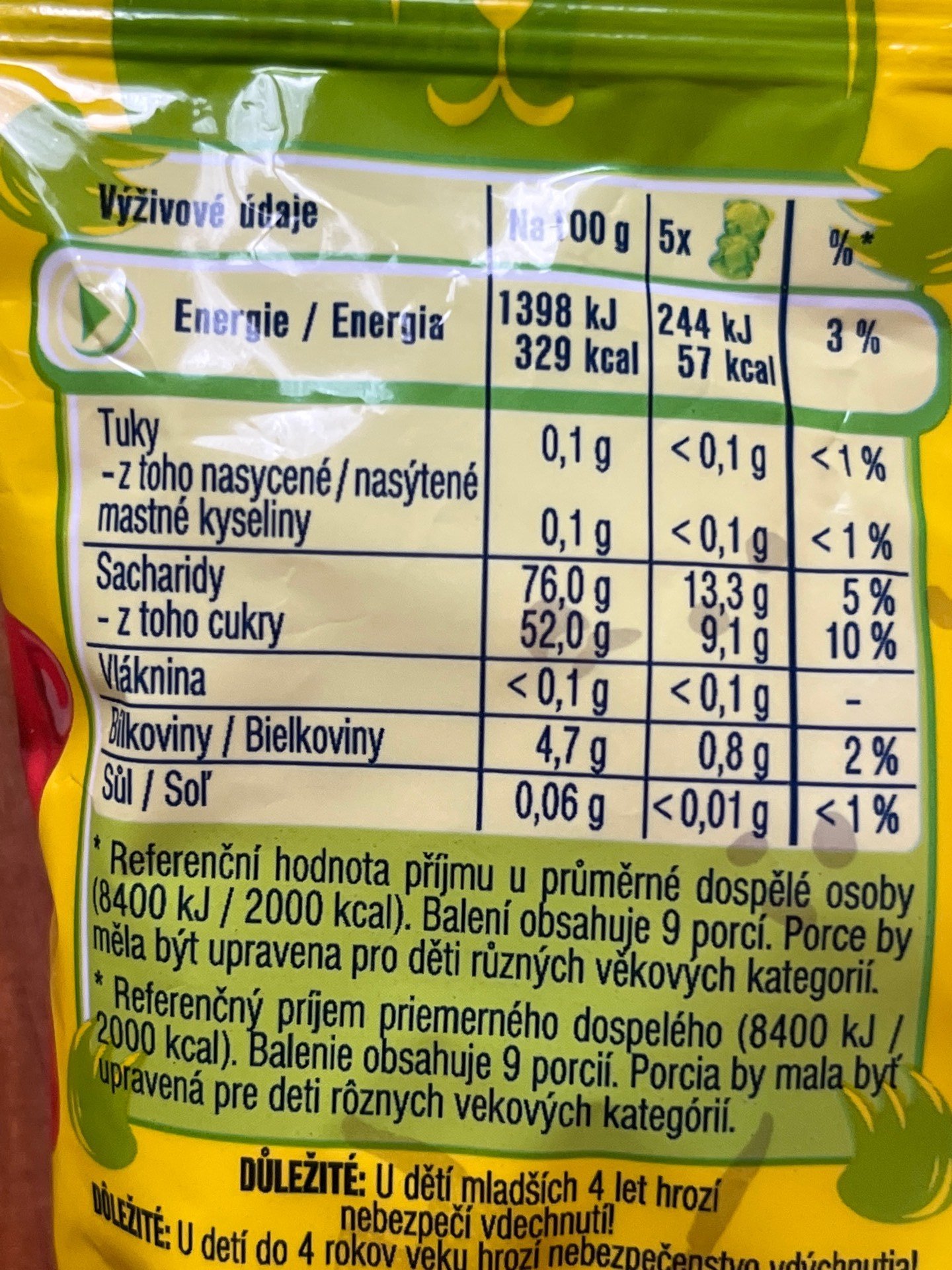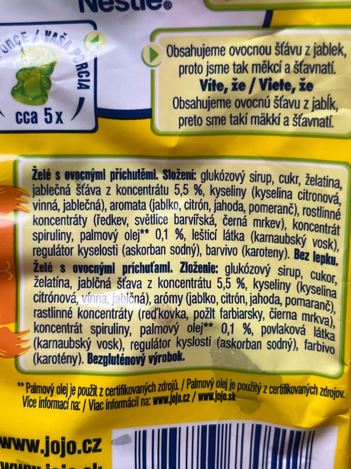 | Obsahuje (modifikovaný) škrob, želatinu |
