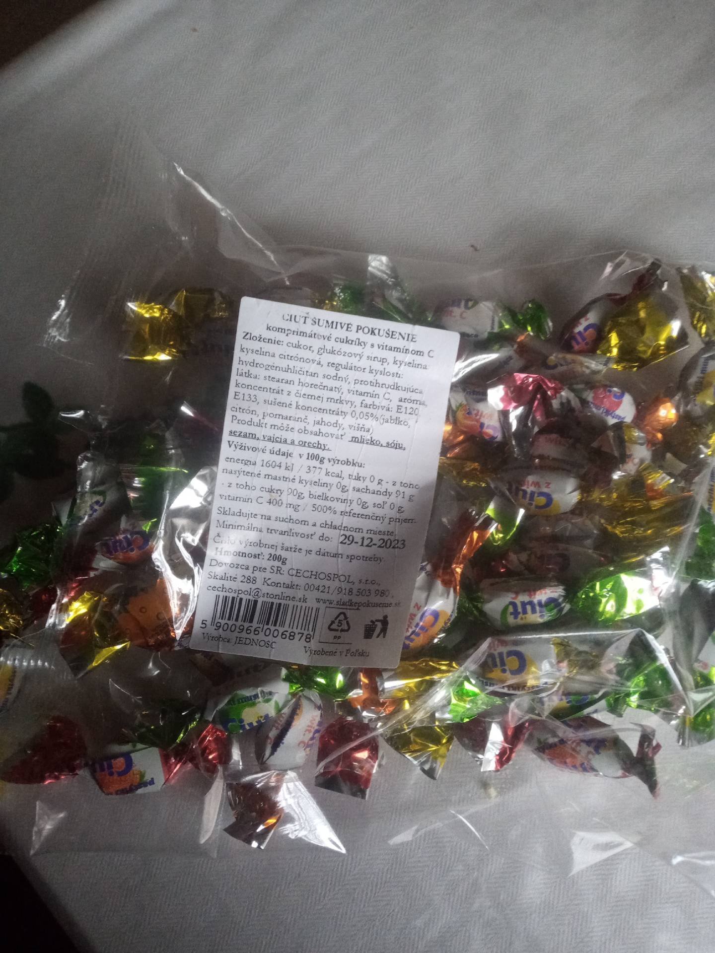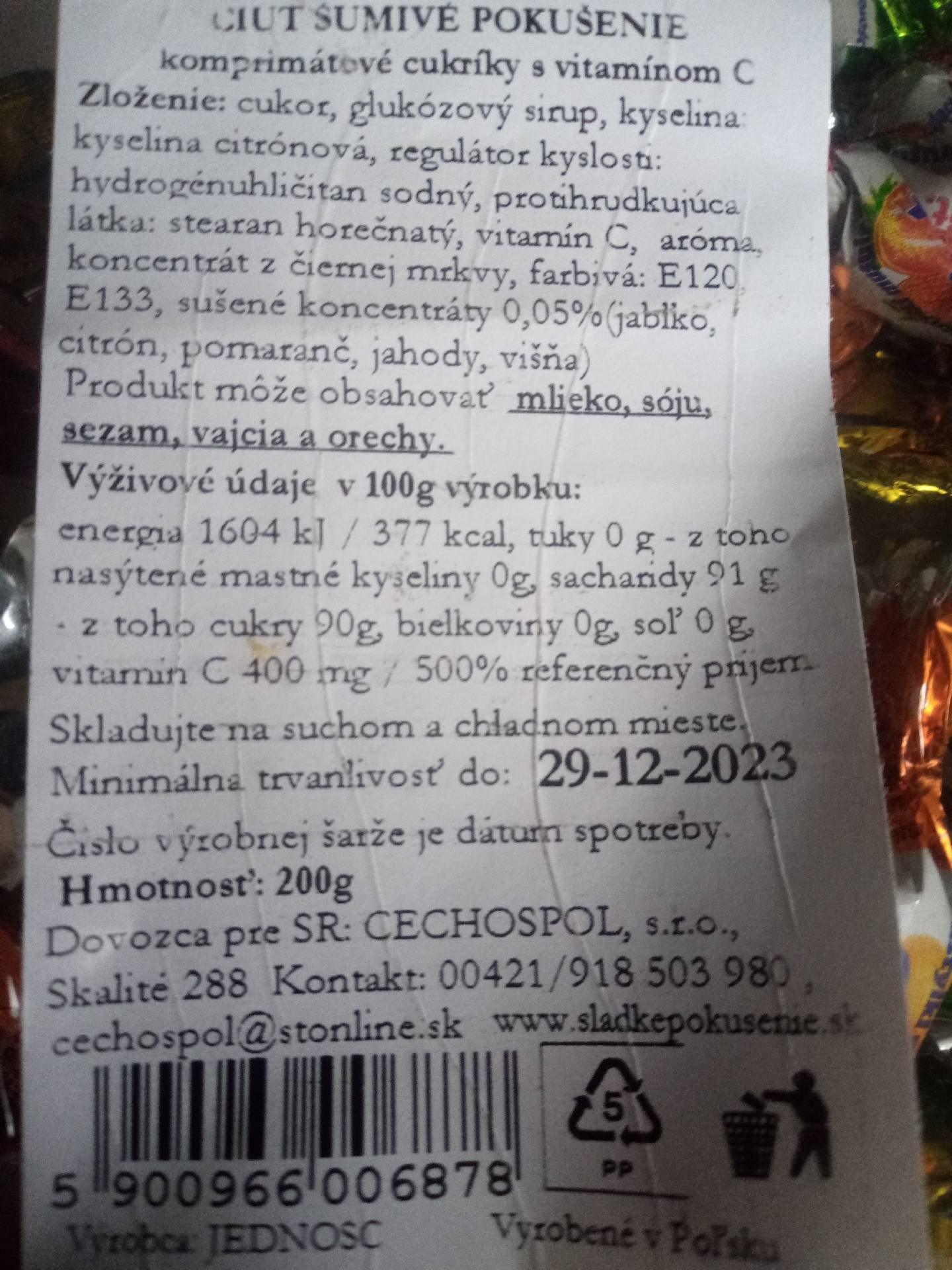 Komprimátová cukrovinka s vitamínem C