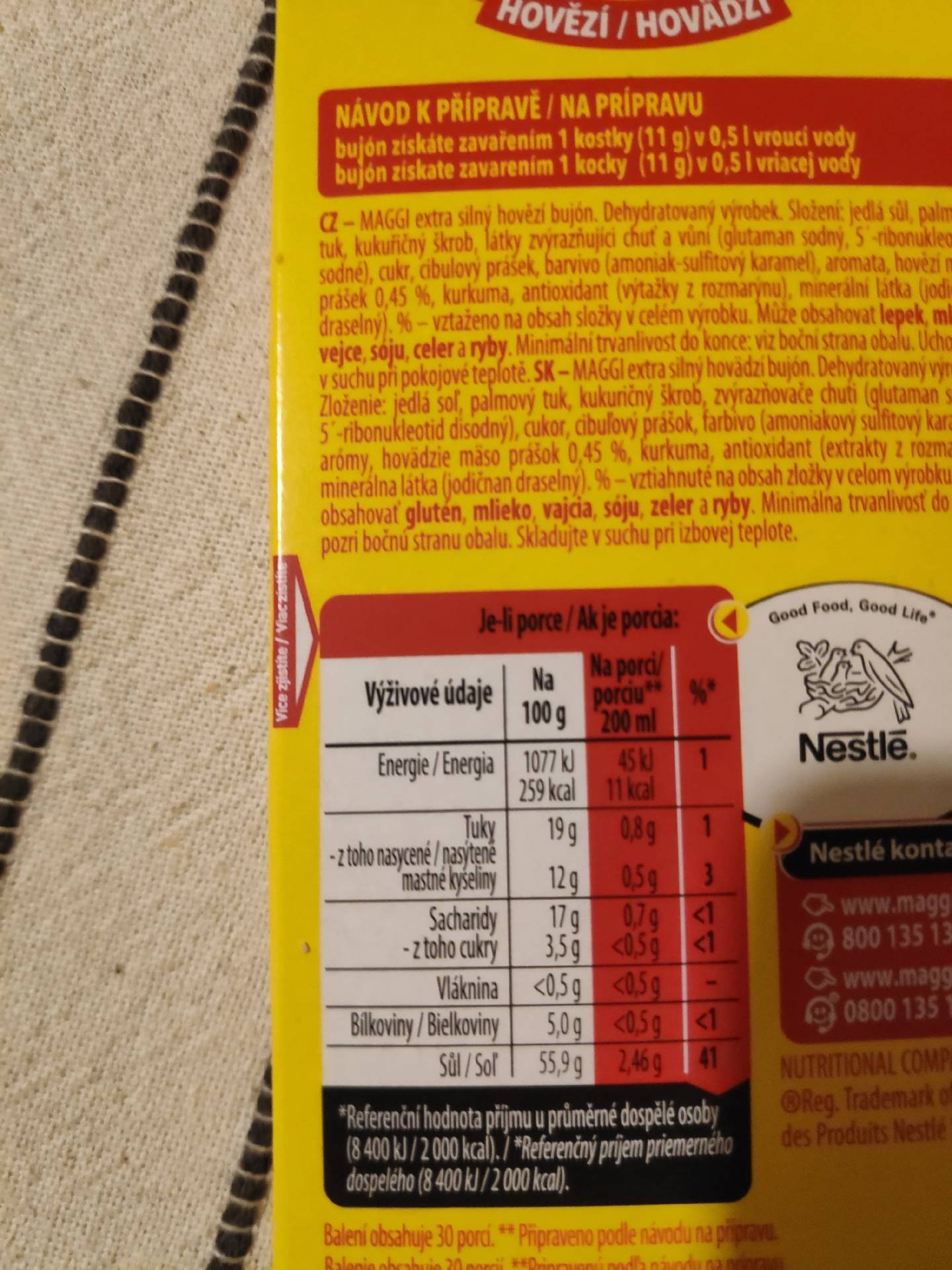 | Obsahuje (modifikovaný) škrob, želatinu |