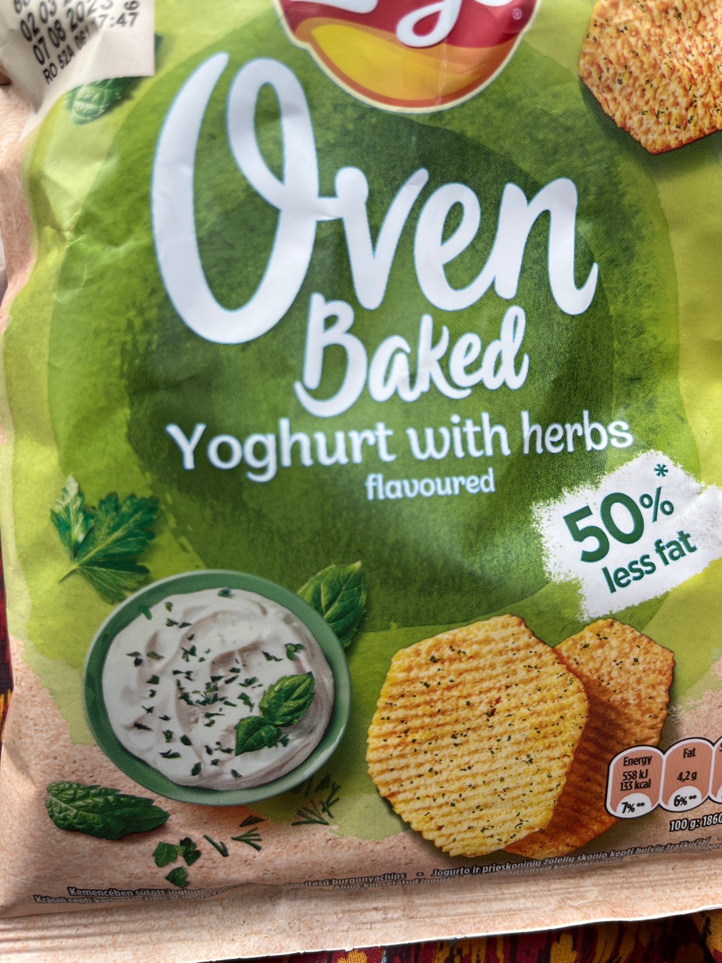 Pečené bramborové lupínky tvarované s příchutí jogurtu a bylinek.