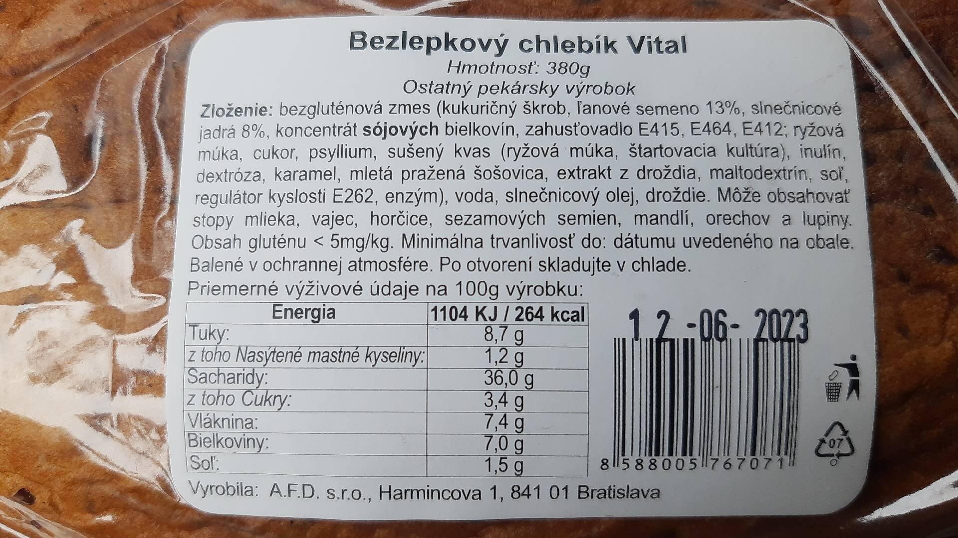 Bezlepkový chlebík Vital