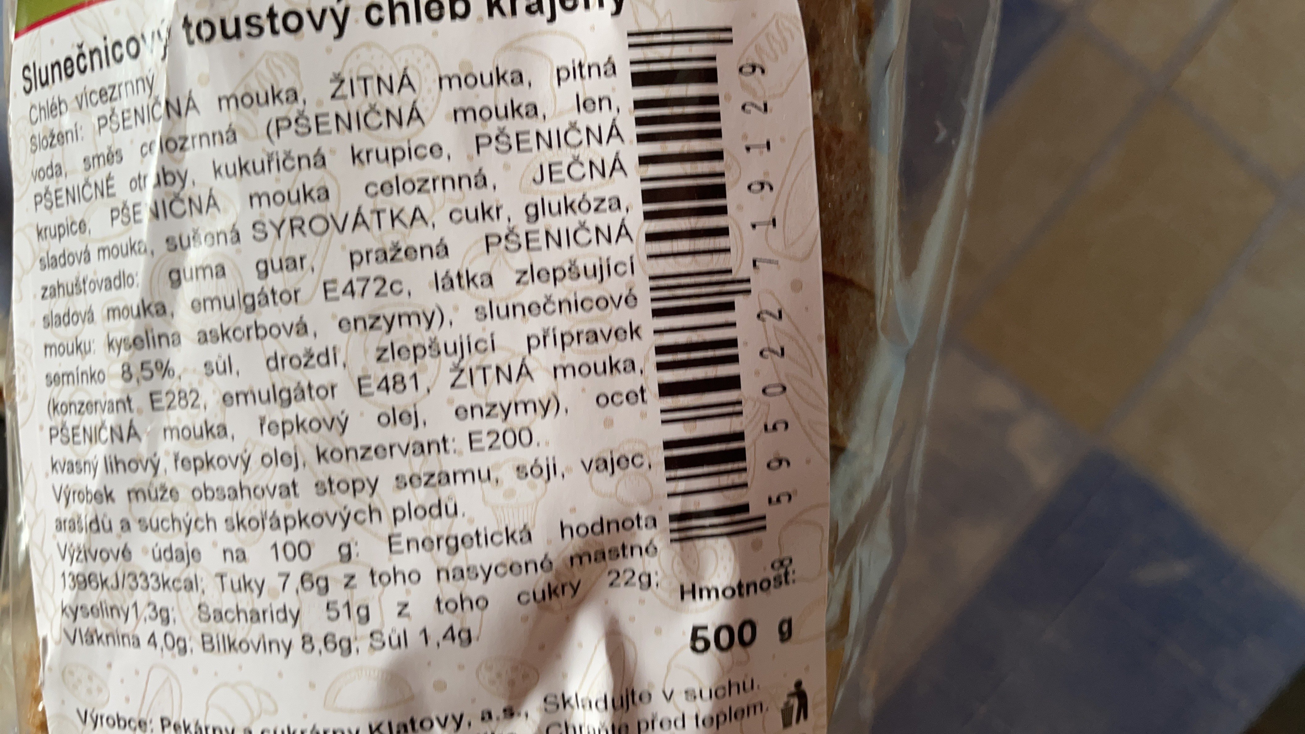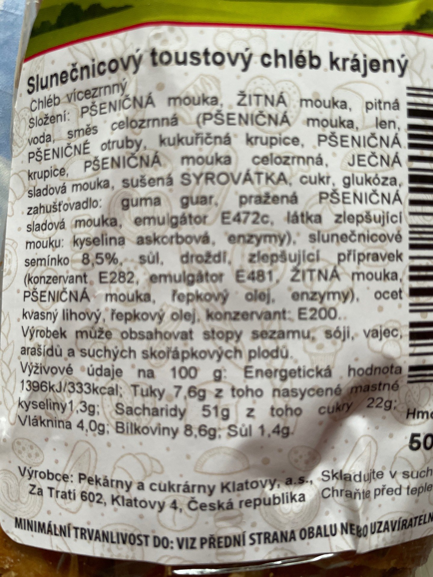 FÉR potravina > Databáze potravin > Chleba > Slunečnicový toustový chléb krájený
