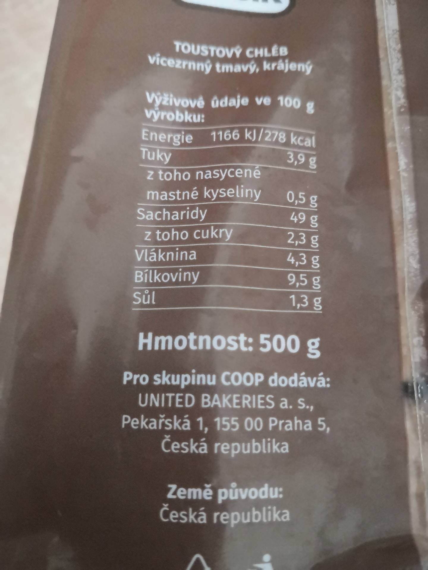 Toustový chléb tmavý