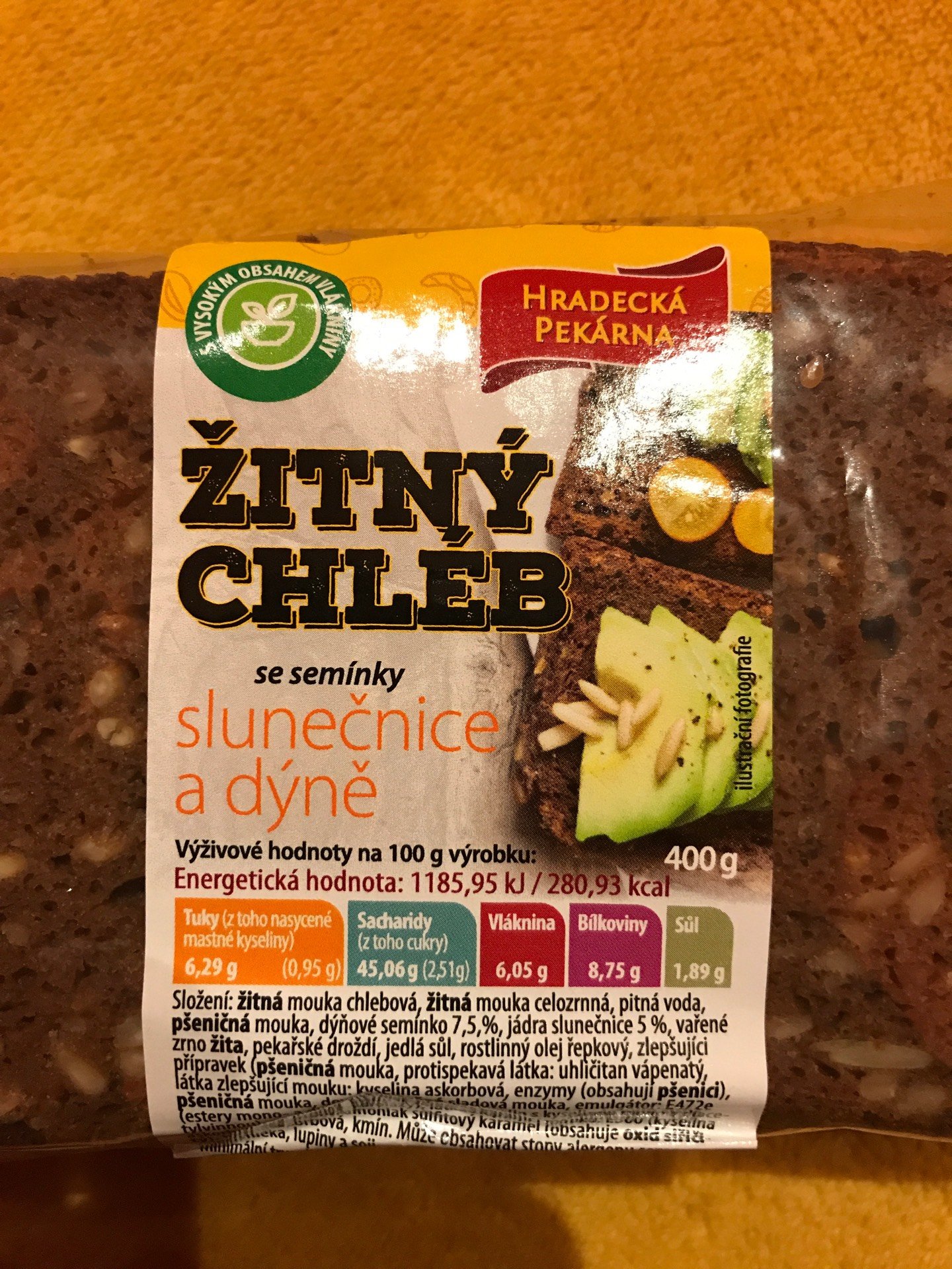 FÉR potravina > Databáze potravin > Chleba > Žitný chléb se semínky slunečnice a dýně