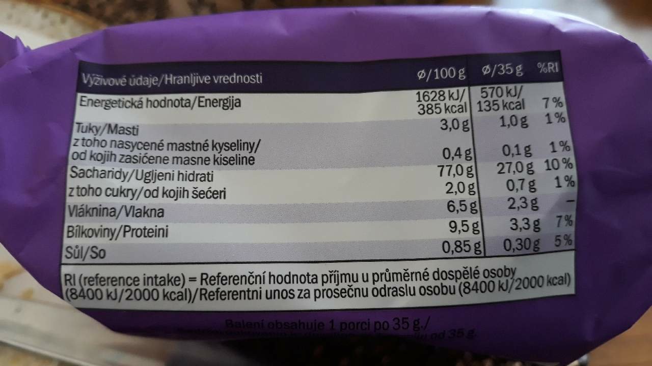 FÉR potravina > Databáze potravin > Chlebíčky, plátky > Tenké kukuřičné chlebíčky s jáhlovovu kaší a černým pepřem