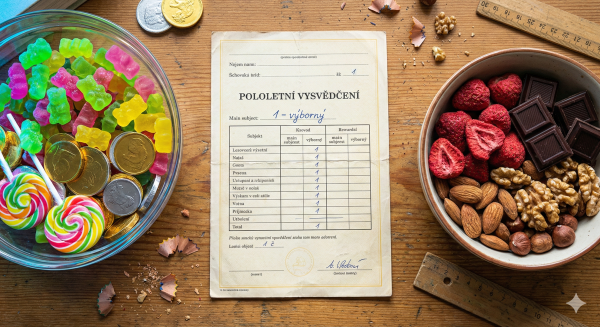 Pololetní vysvědčení je tu. Ať už děti přinesou jedničky nebo nějakou tu trojku, většina rodičů a prarodičů má tendenci je odměnit něčím sladkým. Cukrárny praskají ve švech a regály se sladkostmi mizí před očima. Než ale sáhnete po tom nejbarevnějším sáčku bonbonů nebo čokoládové figurce, zastavte se. Odměna by neměla být trestem pro dětské zdraví.
