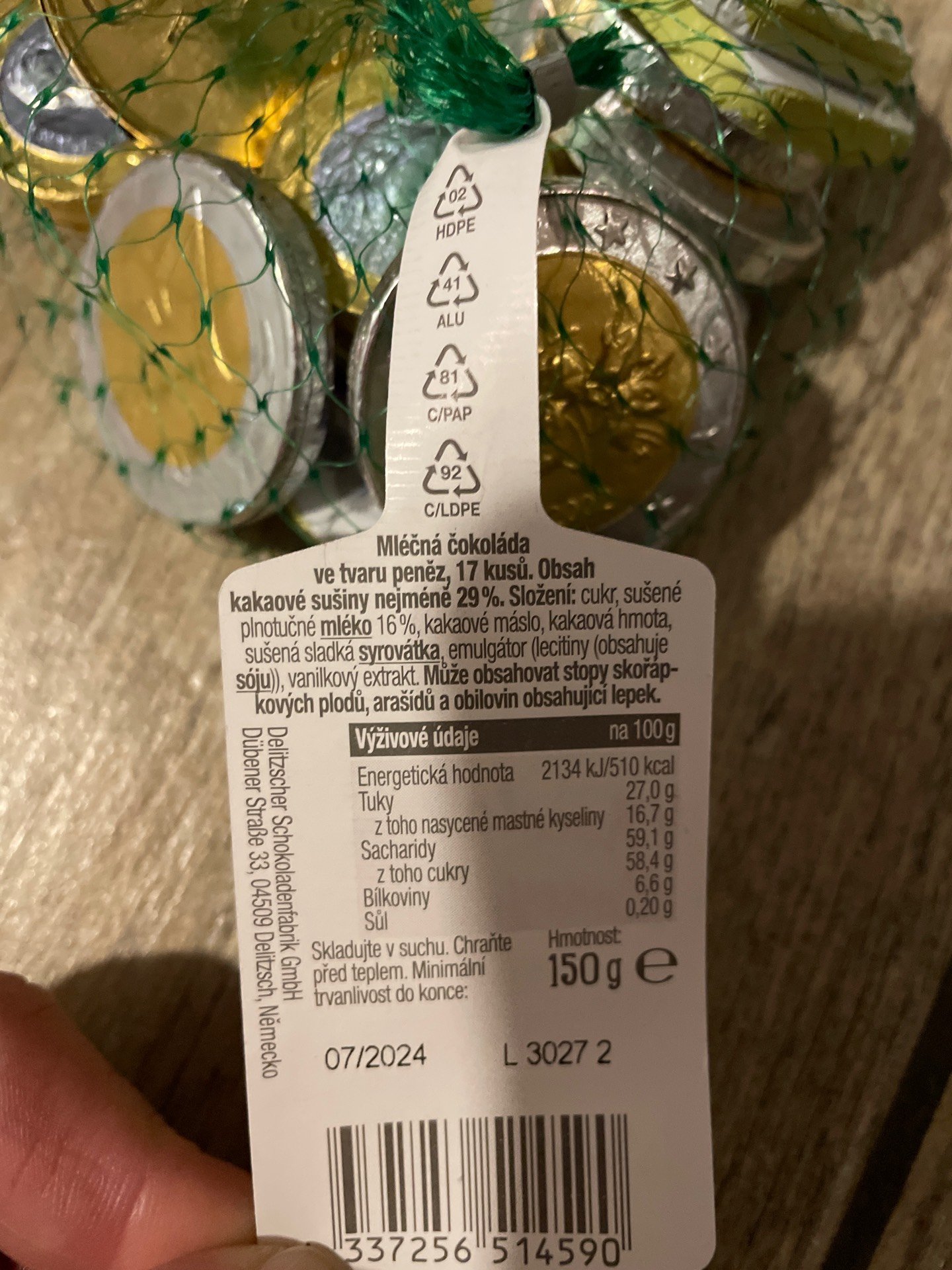 | Obsahuje palmový olej/tuk/palmojádrový tuk |