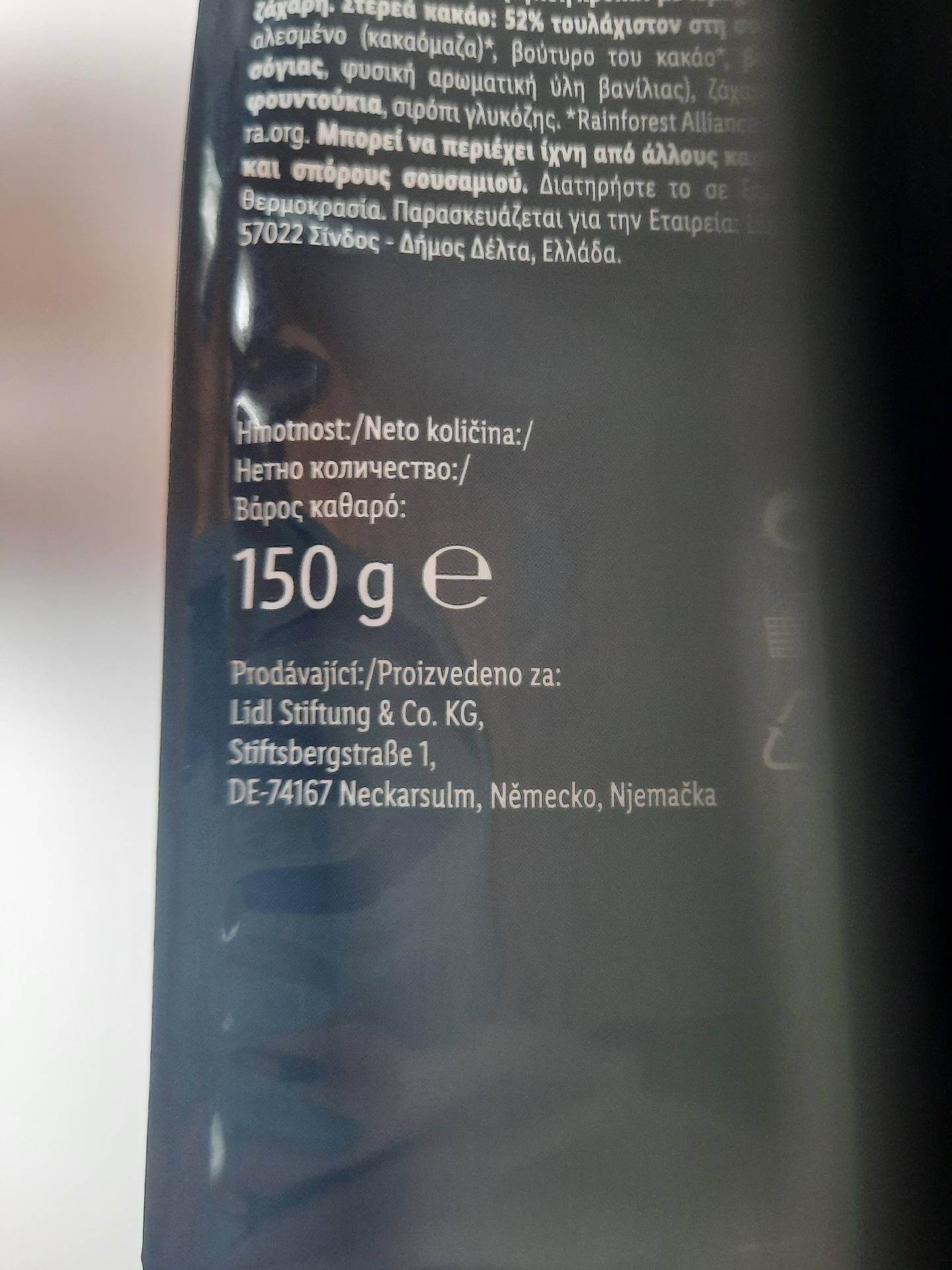 Obsah kakaové sušiny v hořké čokoládě min .52%.