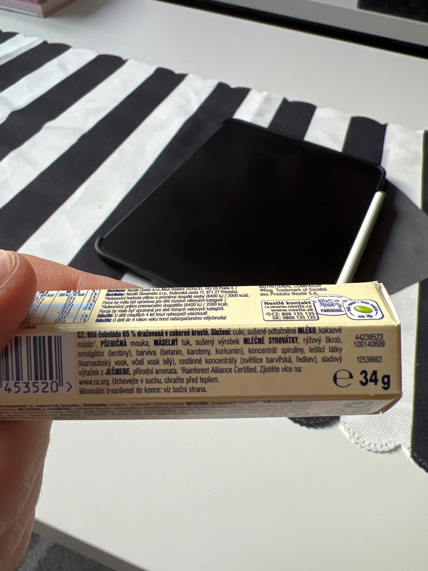 Bílá čokoláda 65% dražovaná v cukerné krustě.