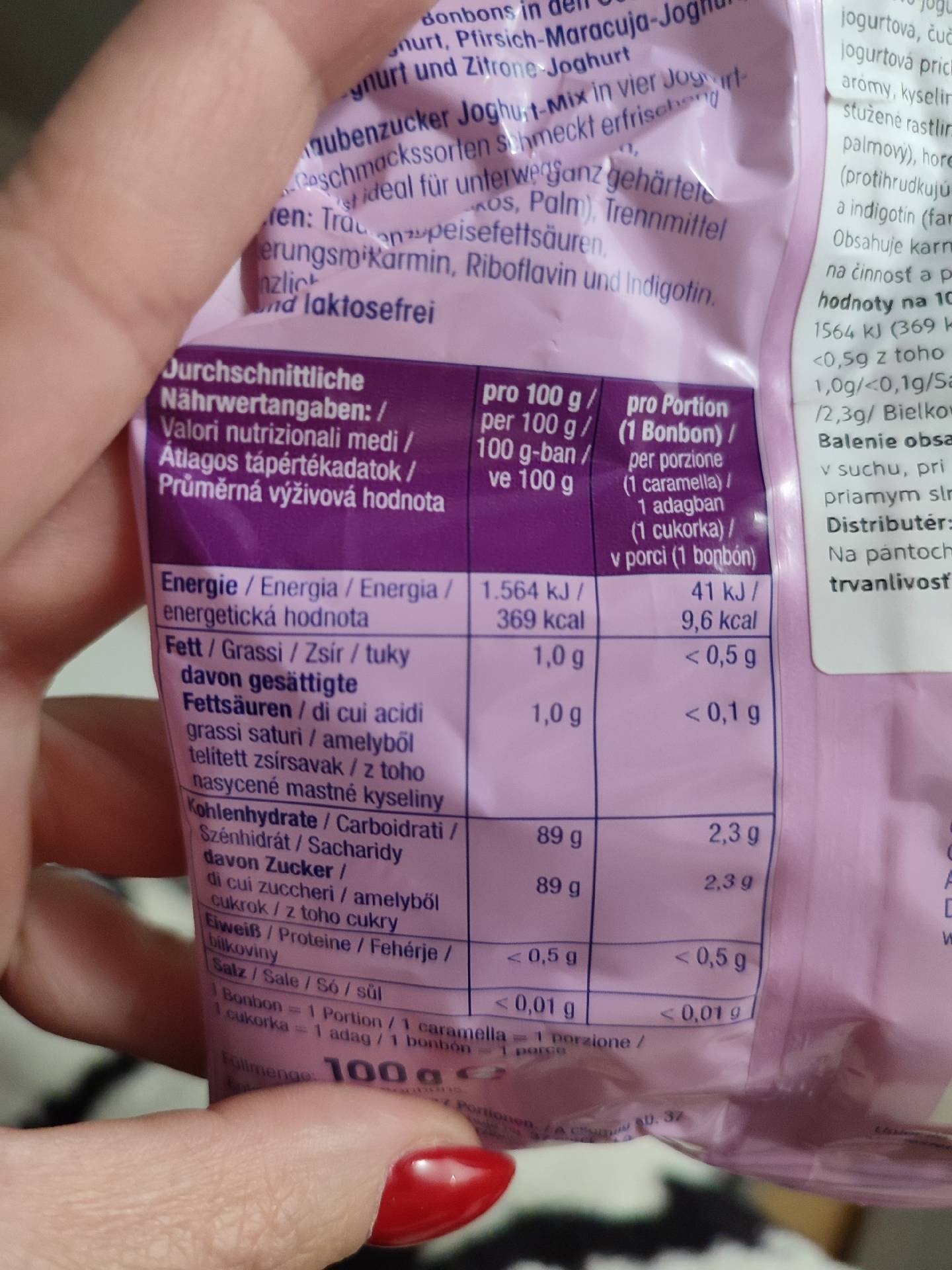 Cukříky z hroznového cukru, směs se čtyřmi jogurtovo-ovocnými příchutěmi.
