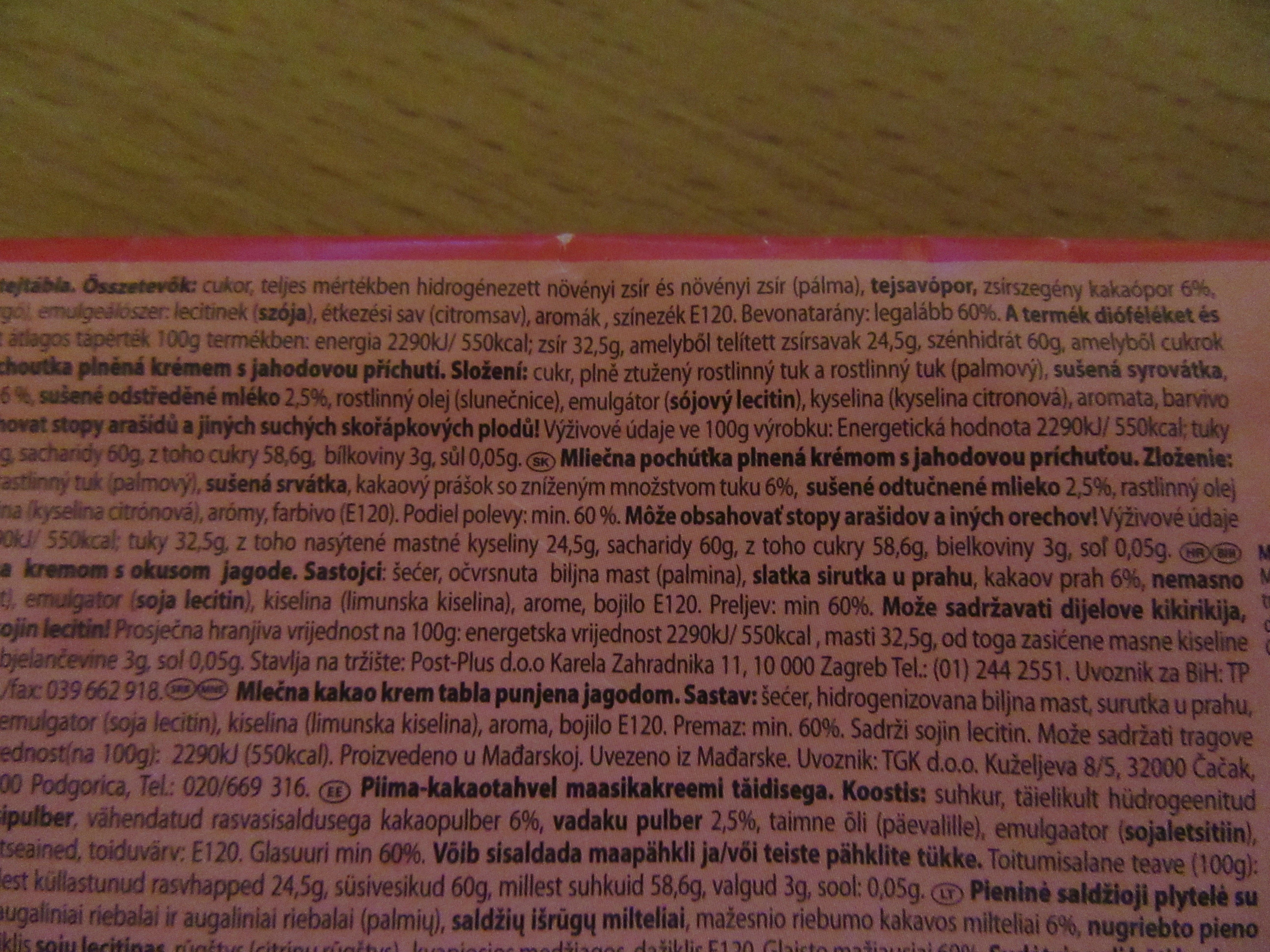 Mléčná pochoutka plněná krémem s jahodovou příchutí.
