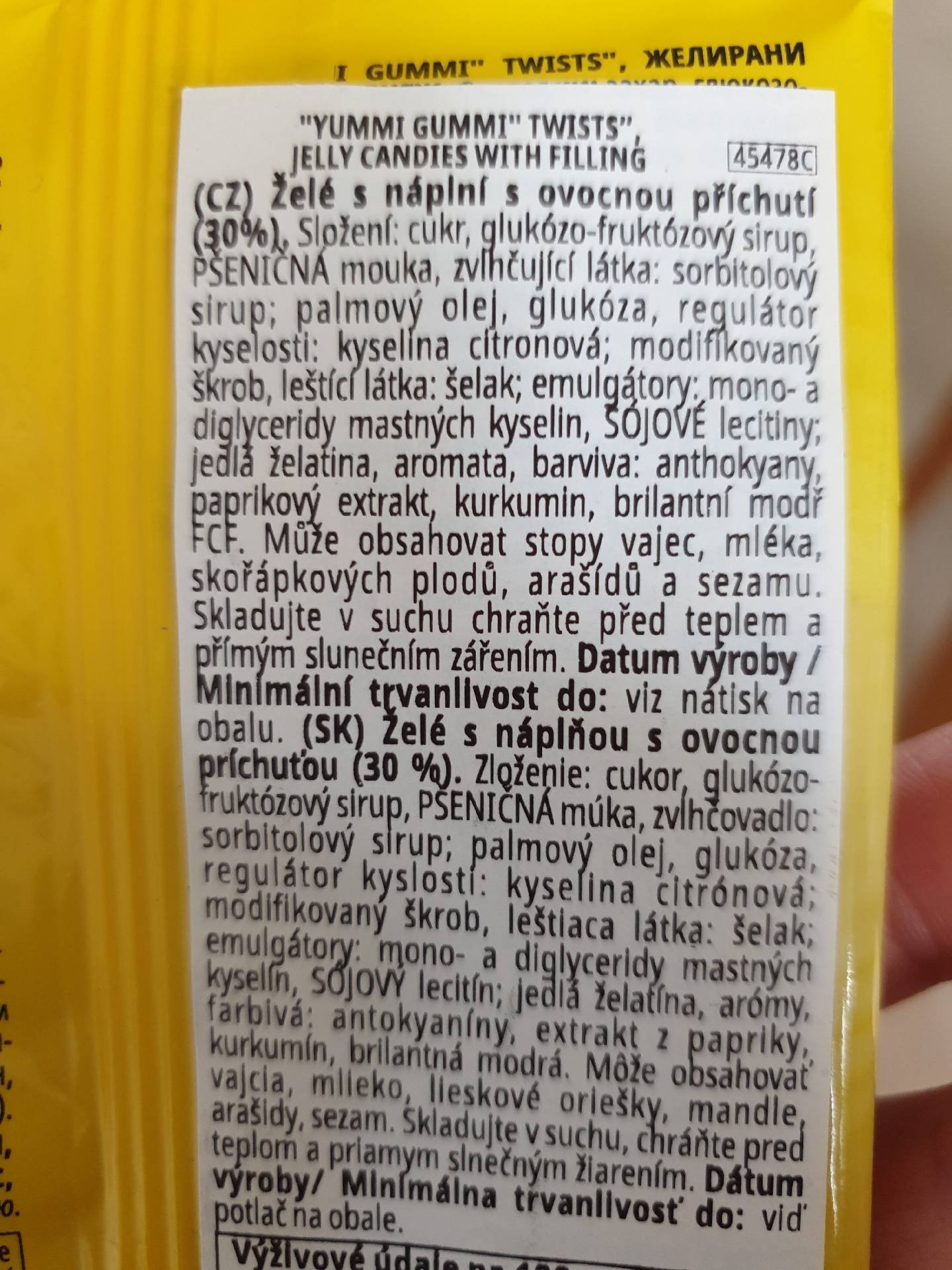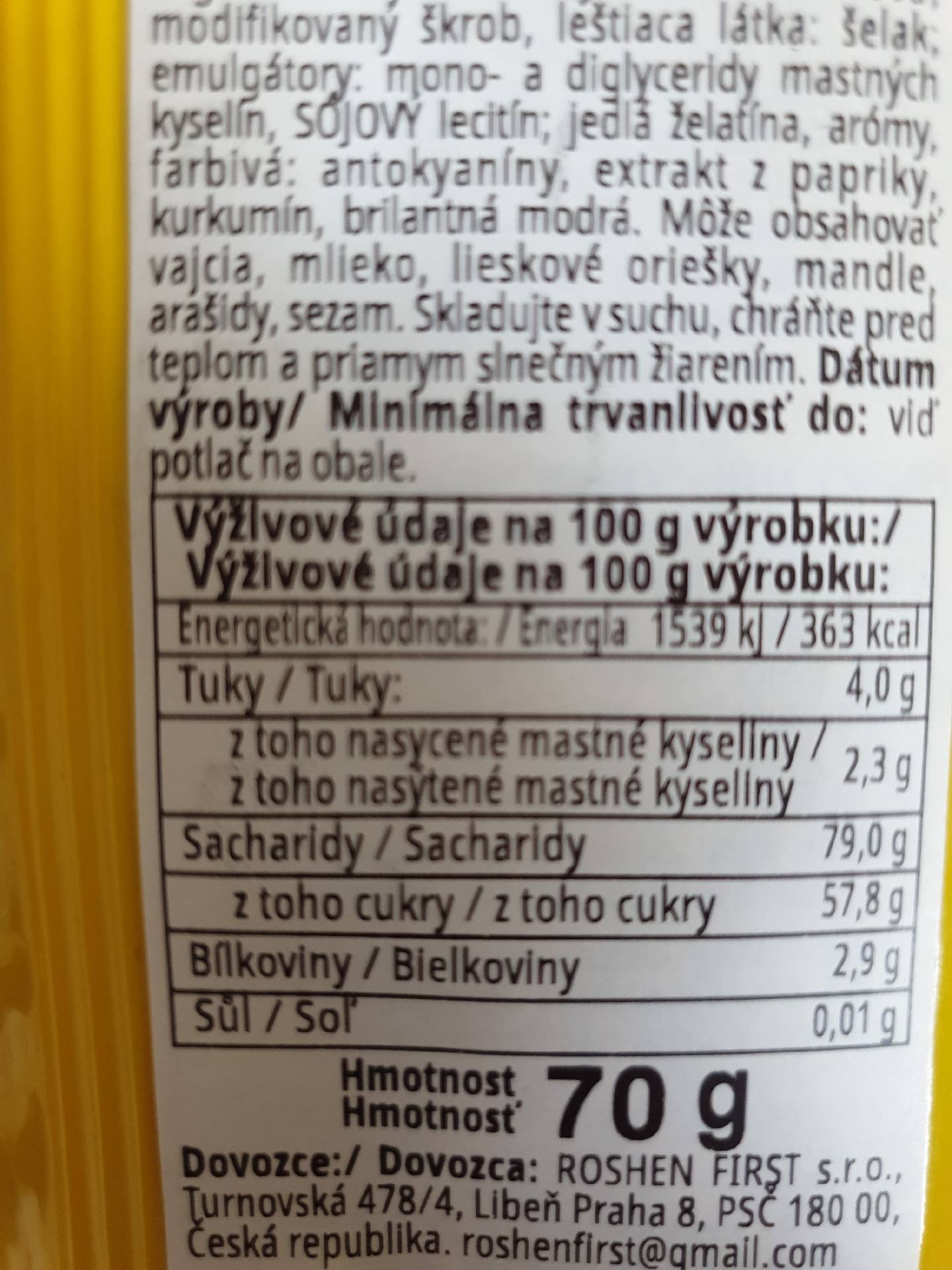 | Obsahuje (modifikovaný) škrob, želatinu |
