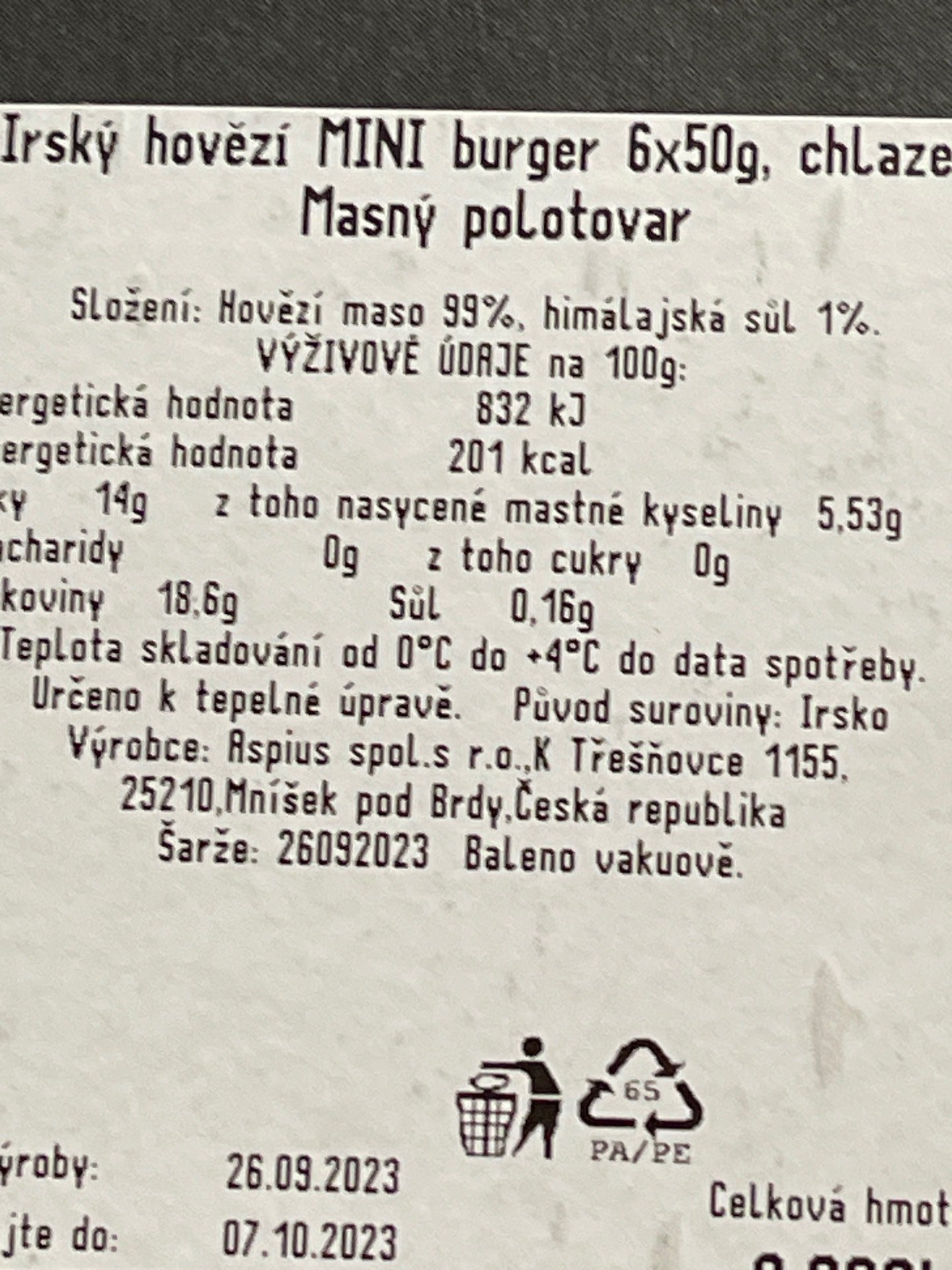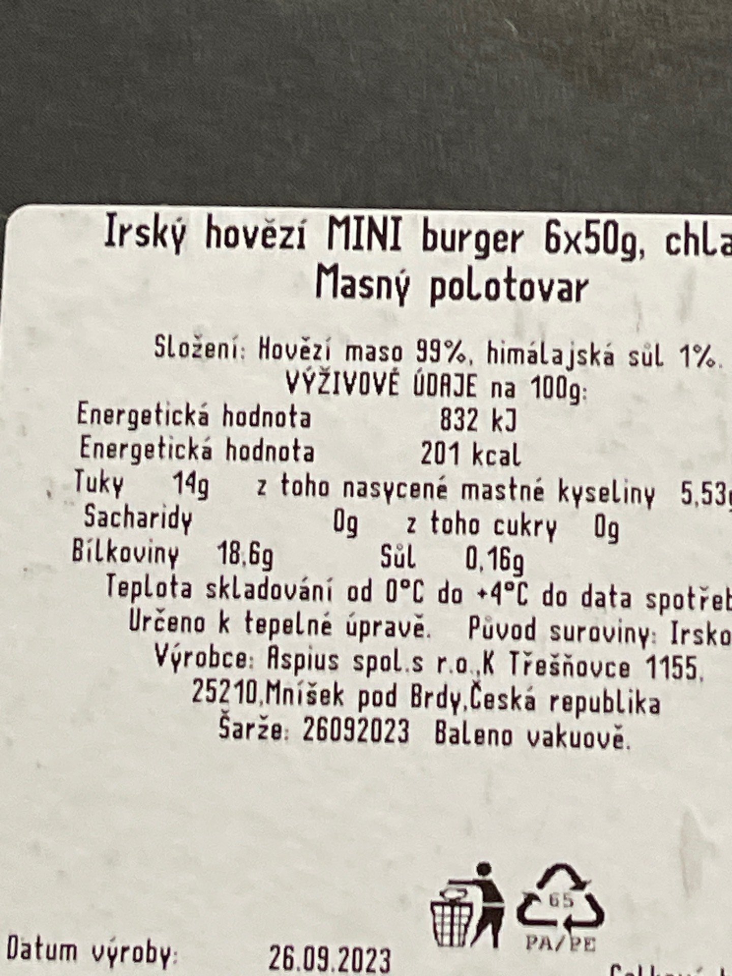 | Obsah přidaných dusitanů | - neuvedeno - | 0 |