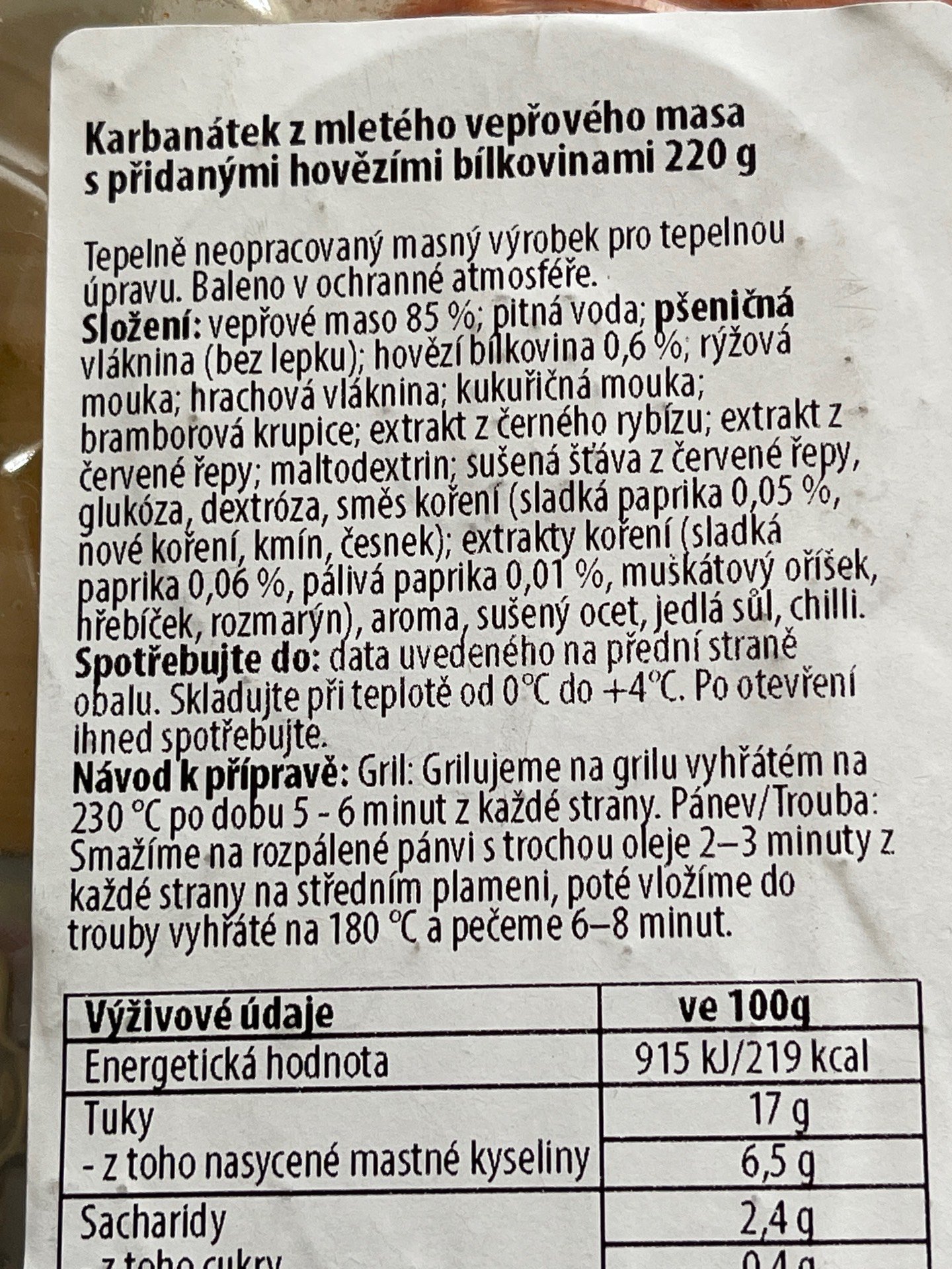 tepelně neopracovaný masný výrobek pro tepelnou úpravu
