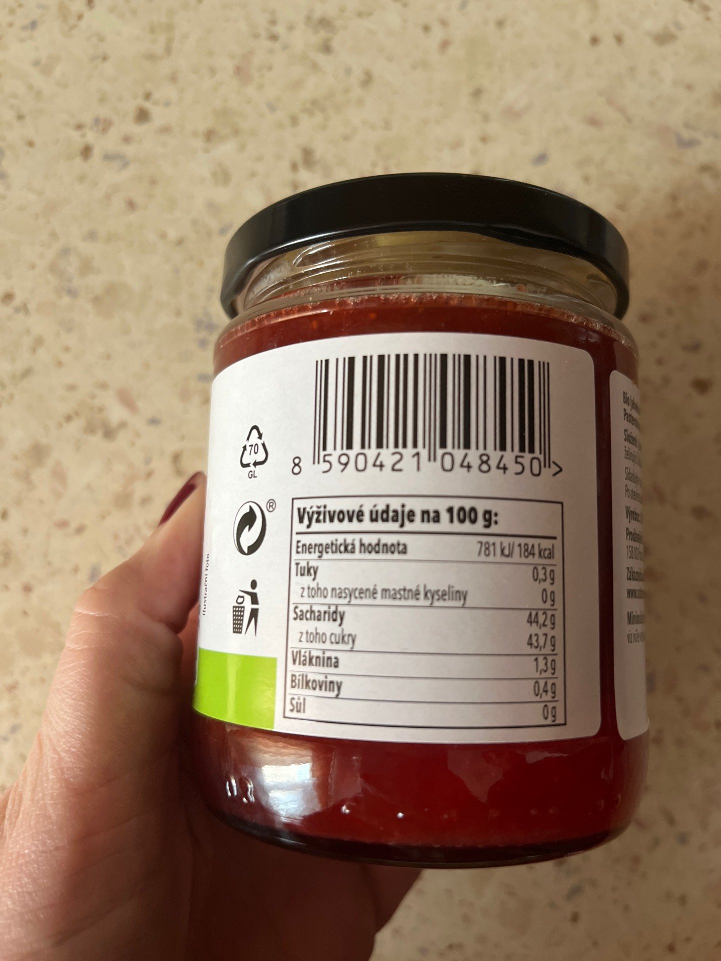 | Konkrétní požadavky na složení | 55g ovoce na 100g výrobku | 3 |