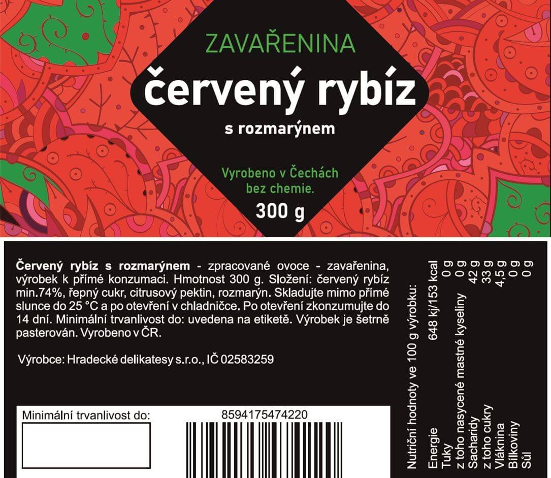 Červený rybíz s rozmarýnem - zpracované ovoce - zavařenina, výrobek k přímé konzumaci.