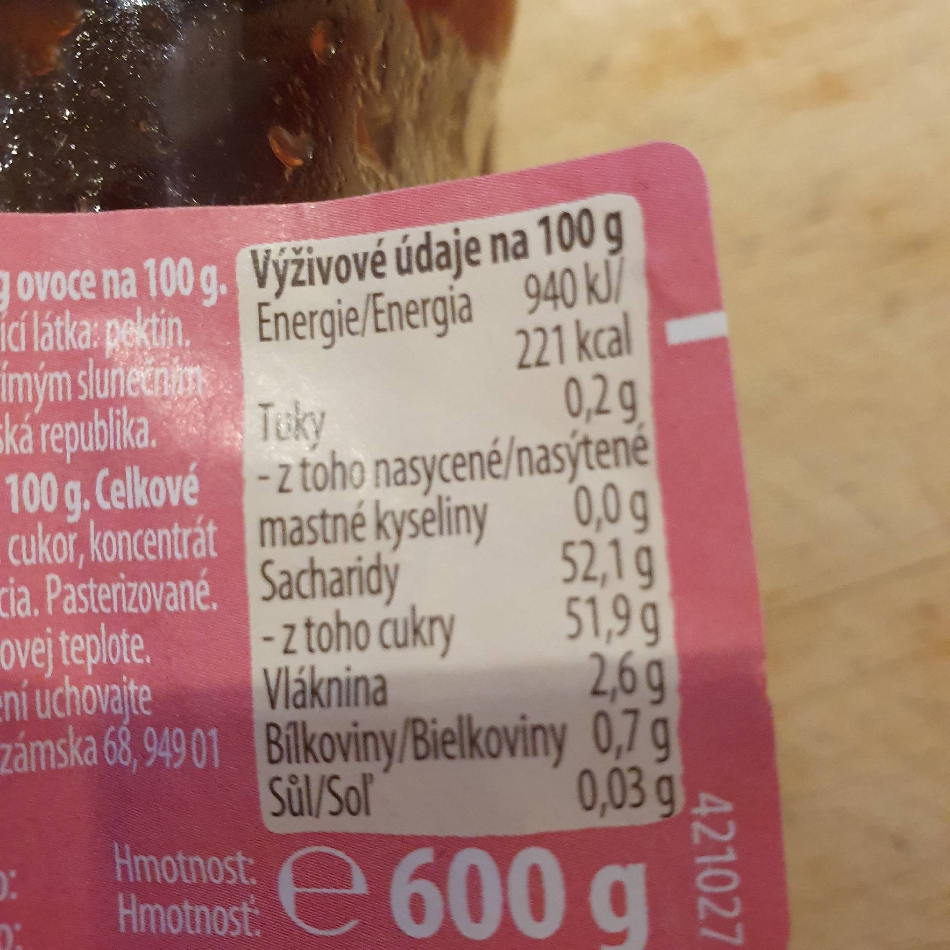 | Bílkoviny | 0.7 g | 4.2 g | 1 % |