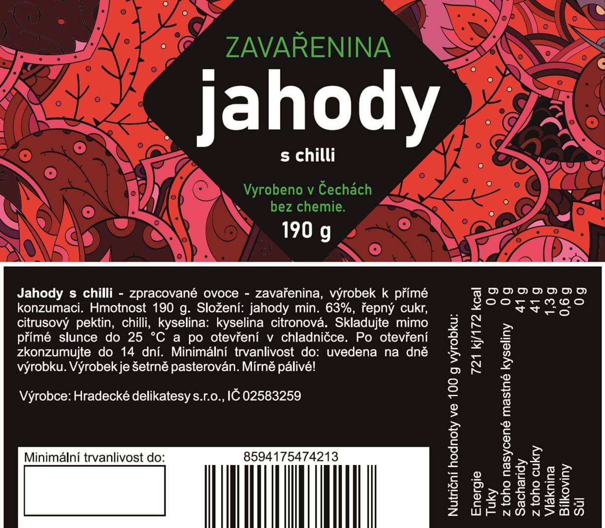 Jahody s chilli - zpracované ovoce - zavařenina, výrobek k přímé konzumaci.