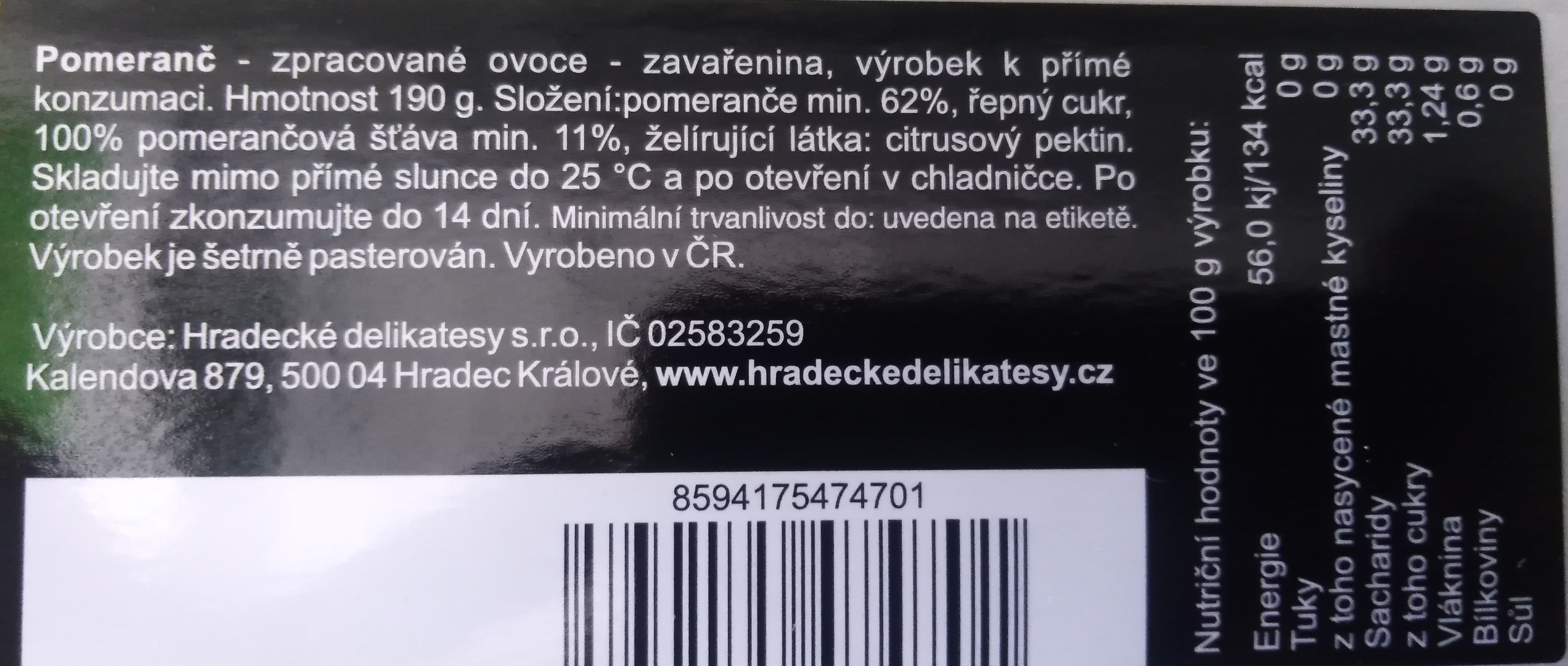 Pomeranč - zpracované ovoce - marmeláda, výrobek k přímé konzumaci.