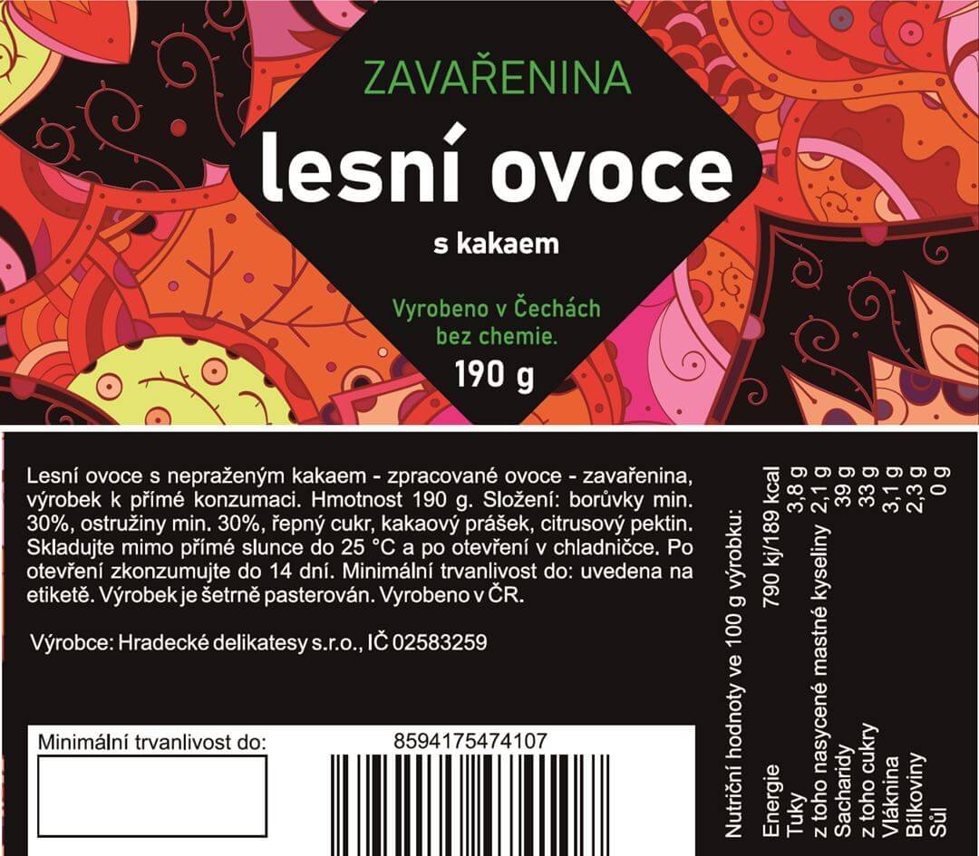 Zavařenina - lesní ovoce s nepraženým kakaem a kakaovými boby