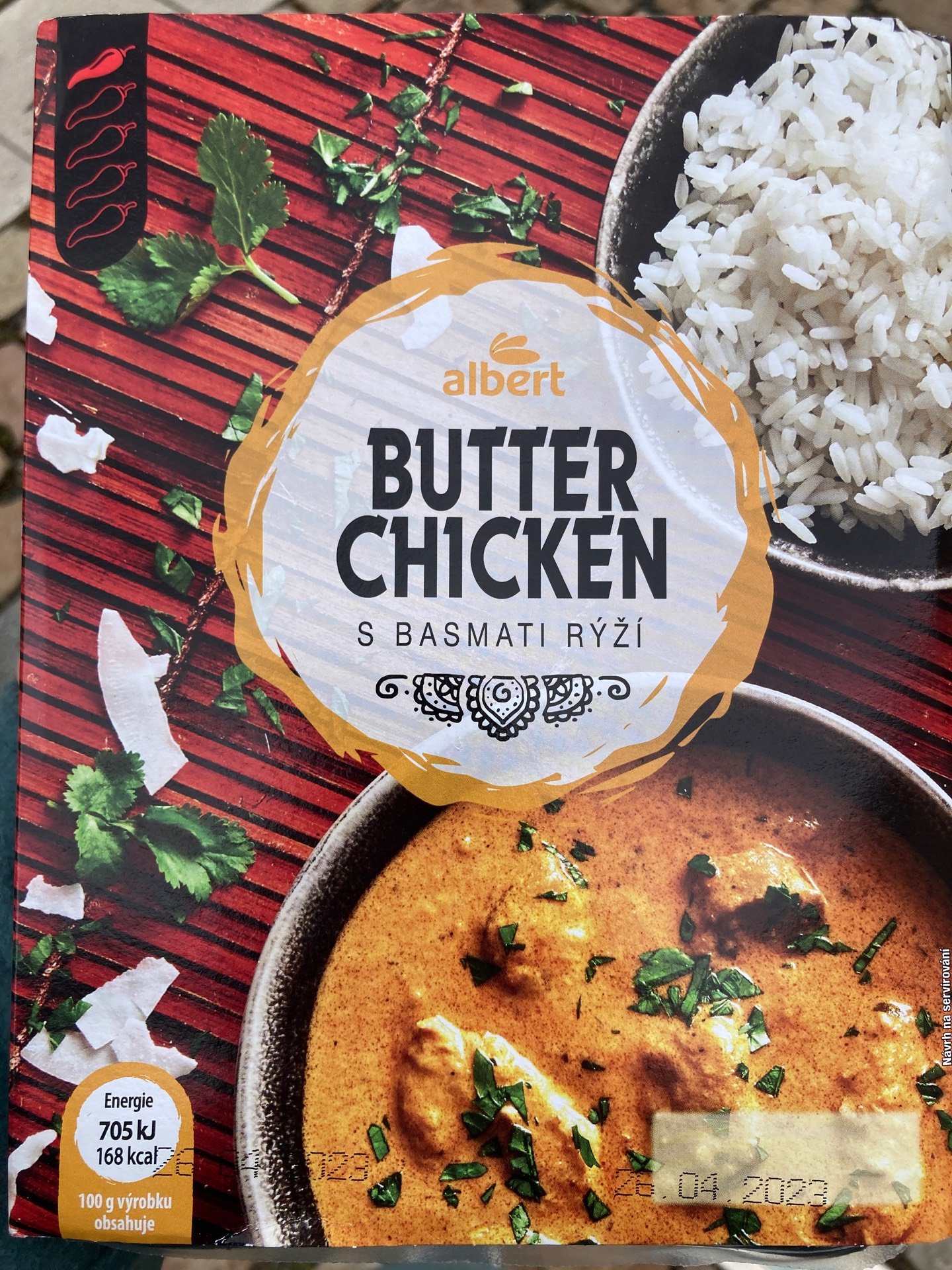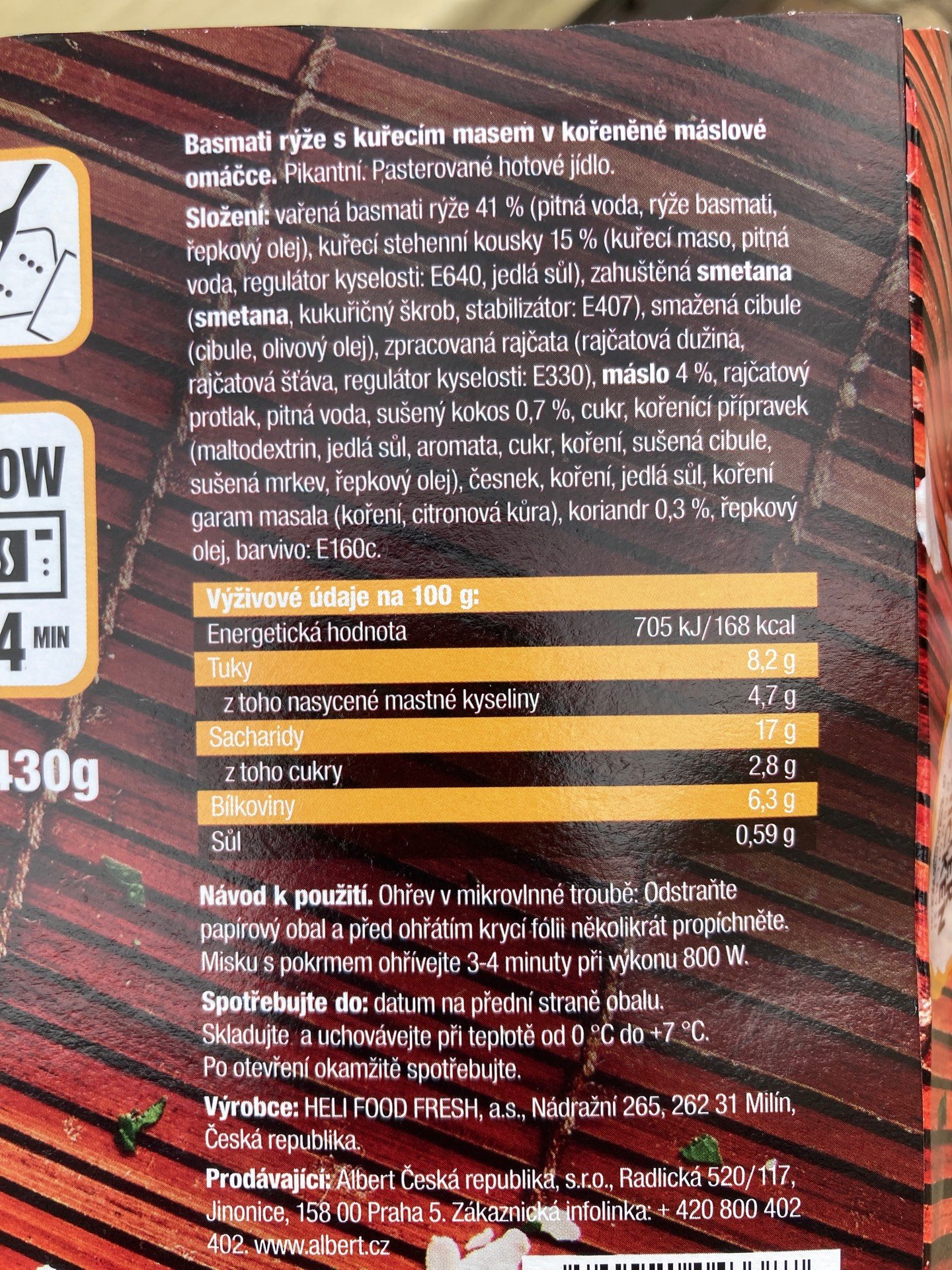 Basmati rýže s kuřecím masem v kořeněné máslové omáčce.