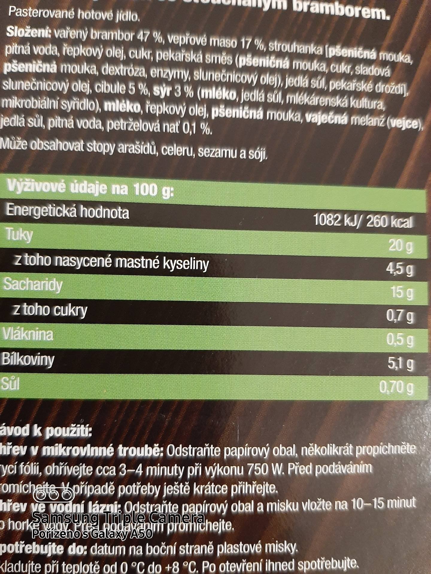 | Obsahuje (modifikovaný) škrob, želatinu |