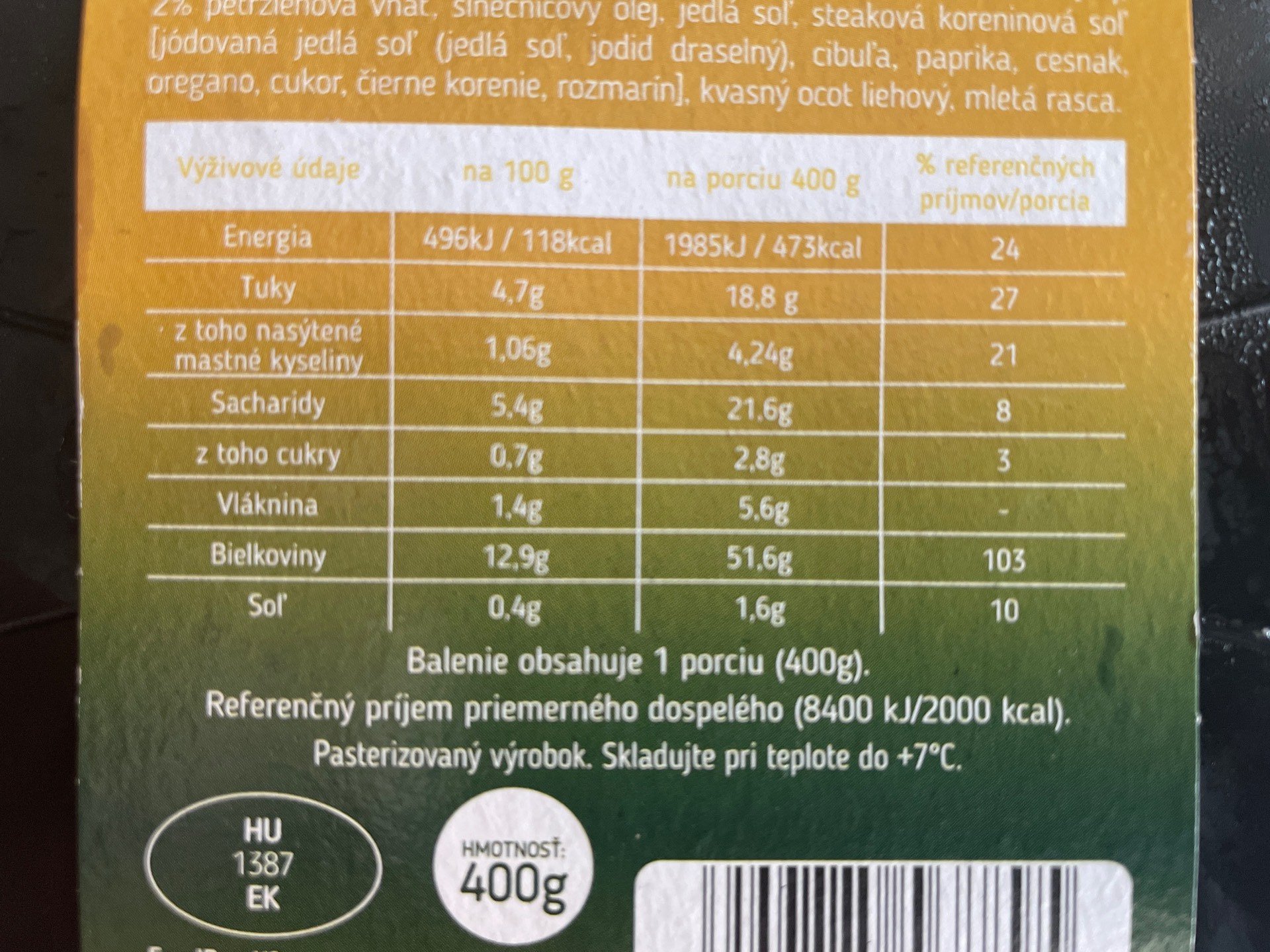 | 100 g | 1 porce 400 g |
