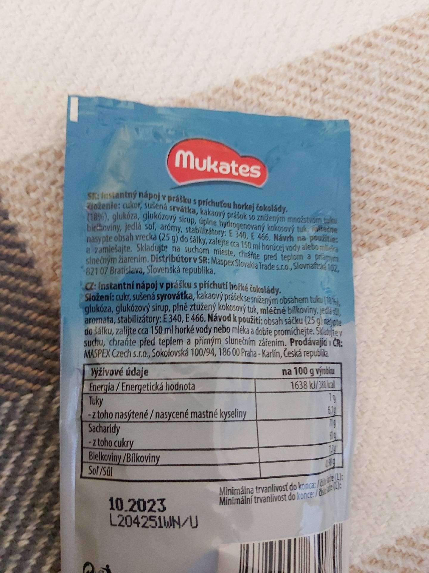 Instantní nápoj v prášku s příchutí hořké čokolády.