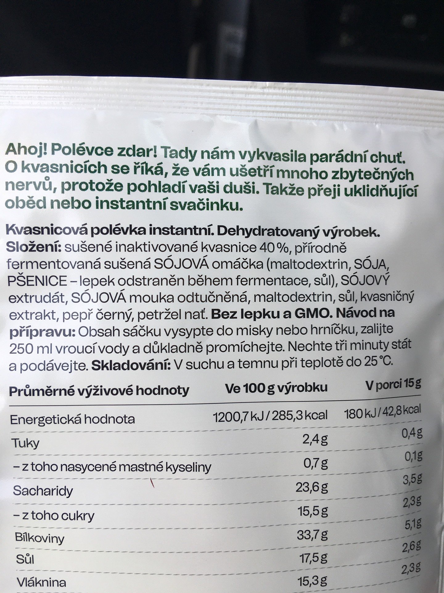 Kvasnicová instantní polévka bez lepku a přidaného glutamátu