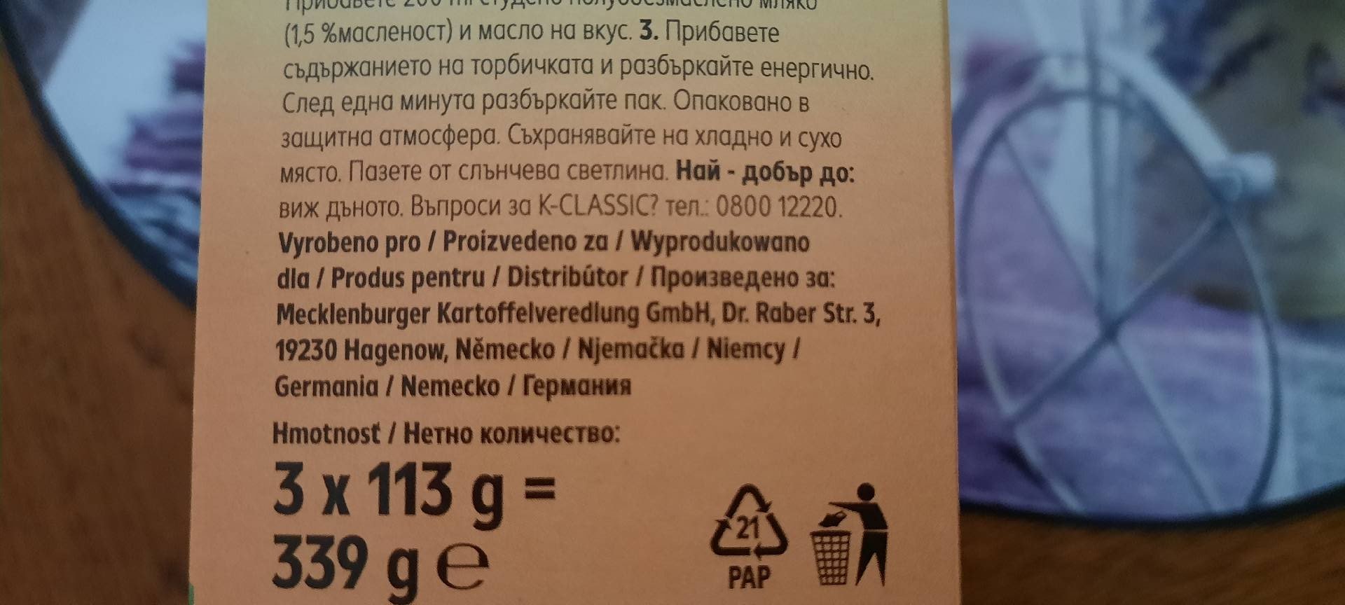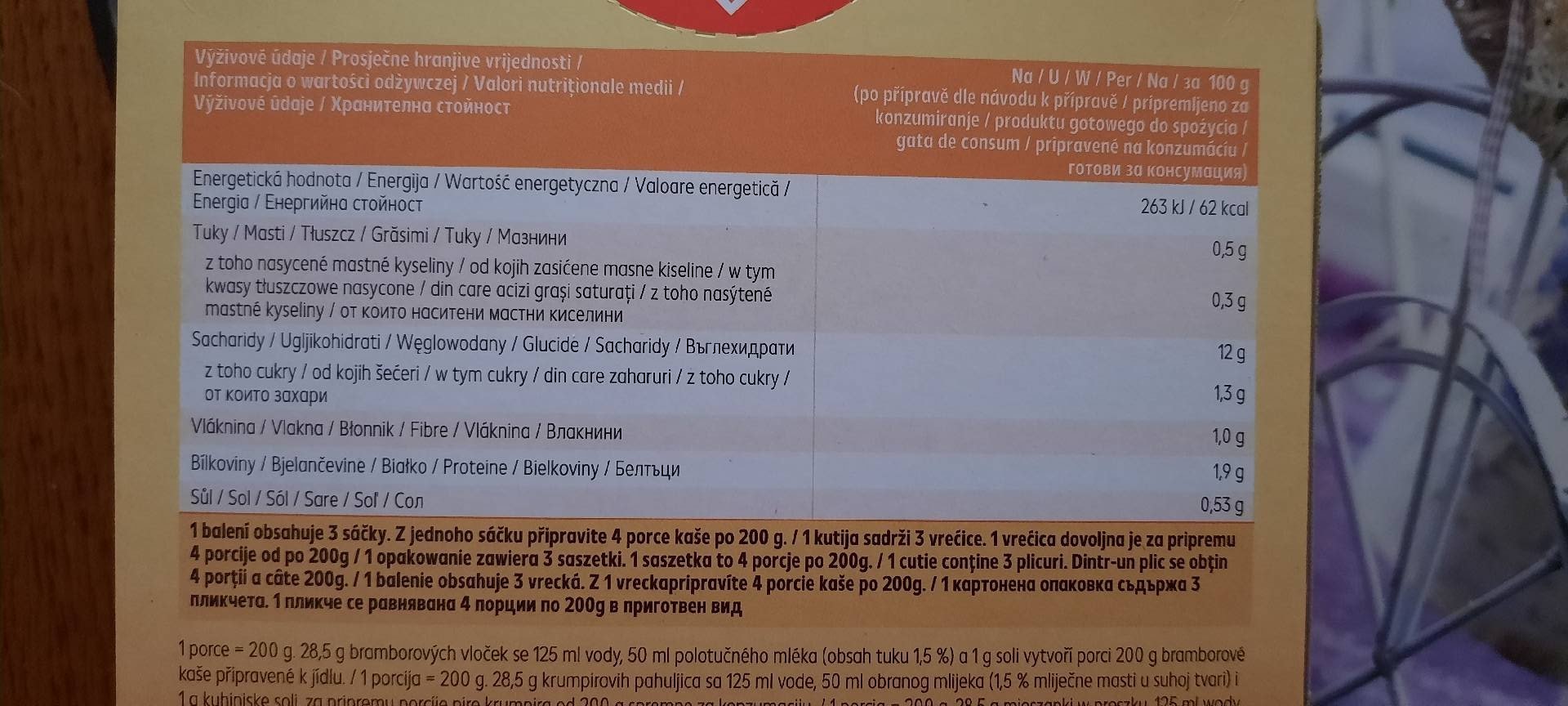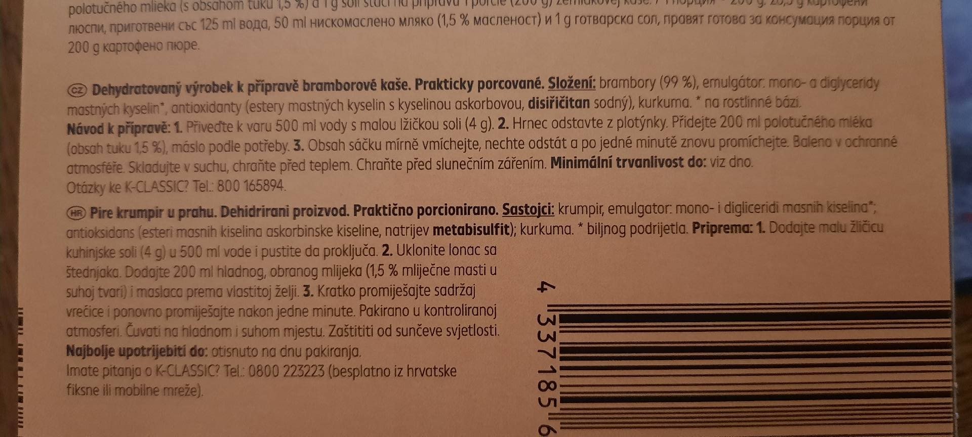 Dehydratovaný výrobek k přípravě bramborové kaše.