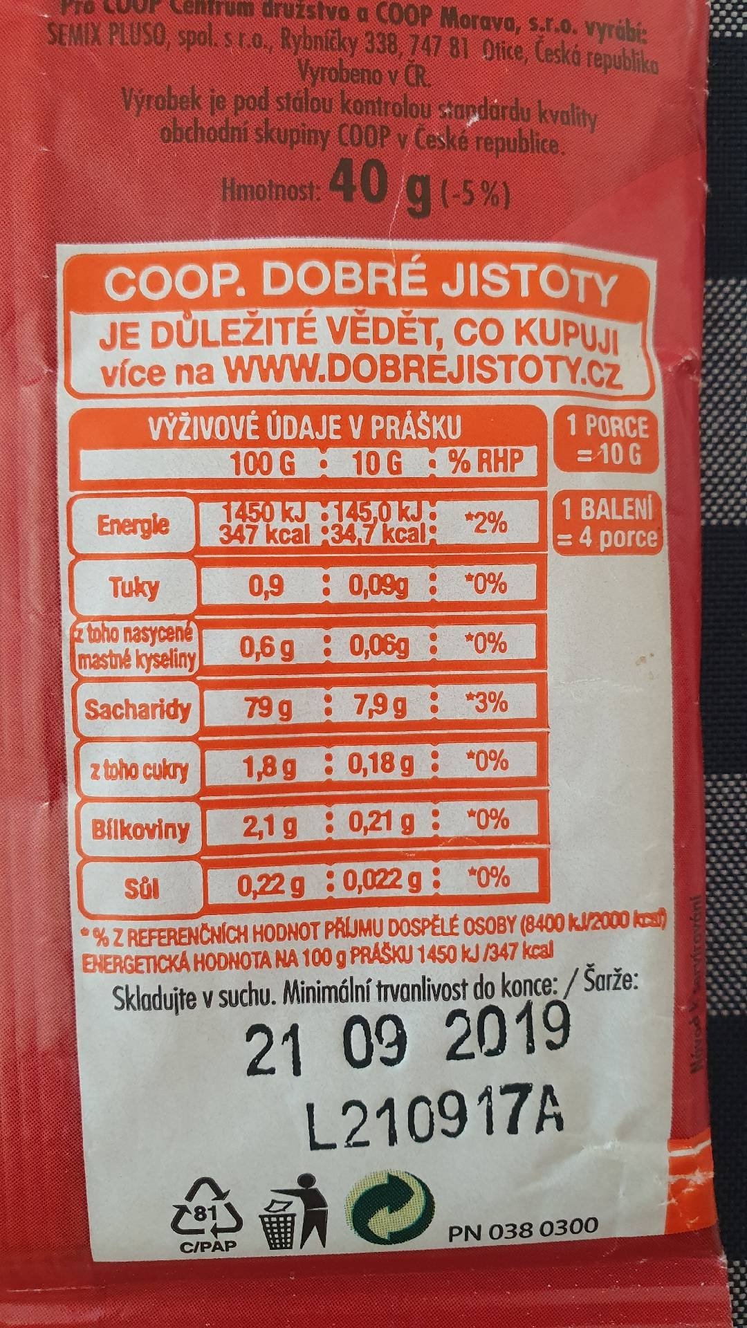 | Obsahuje palmový olej/tuk/palmojádrový tuk |