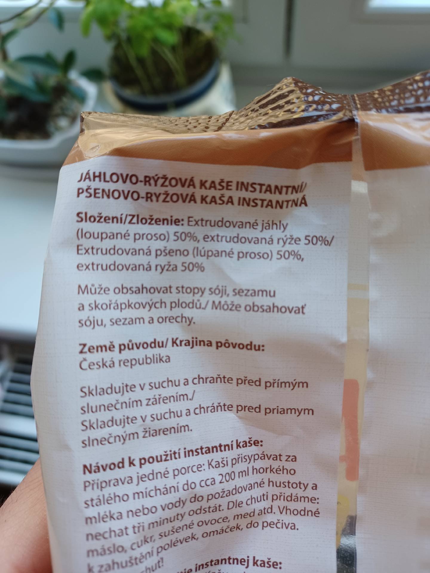 Jáhlo-rýžová instatní kaše.