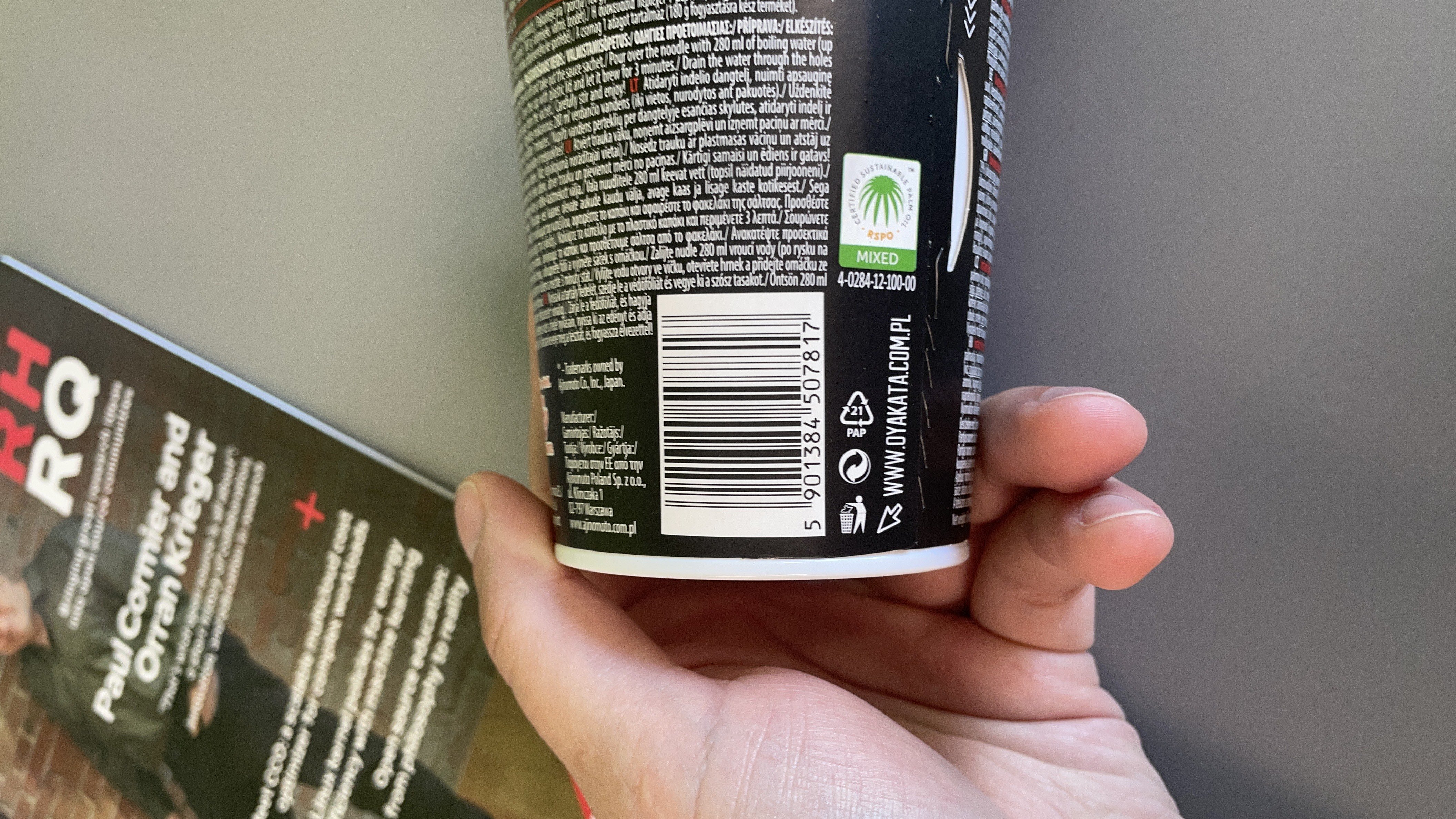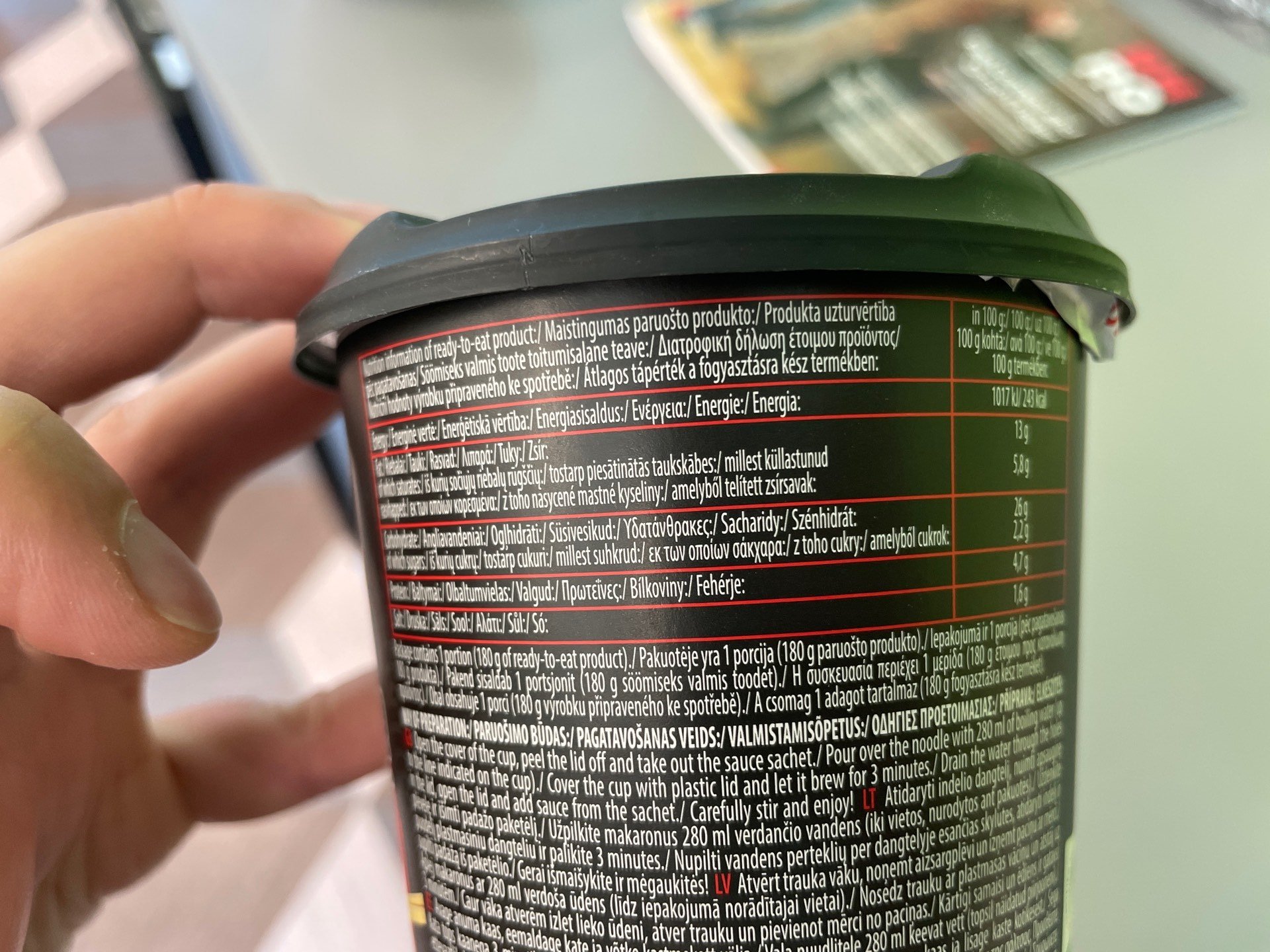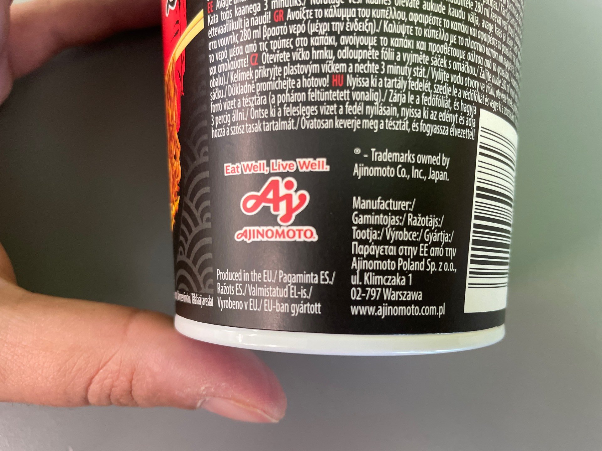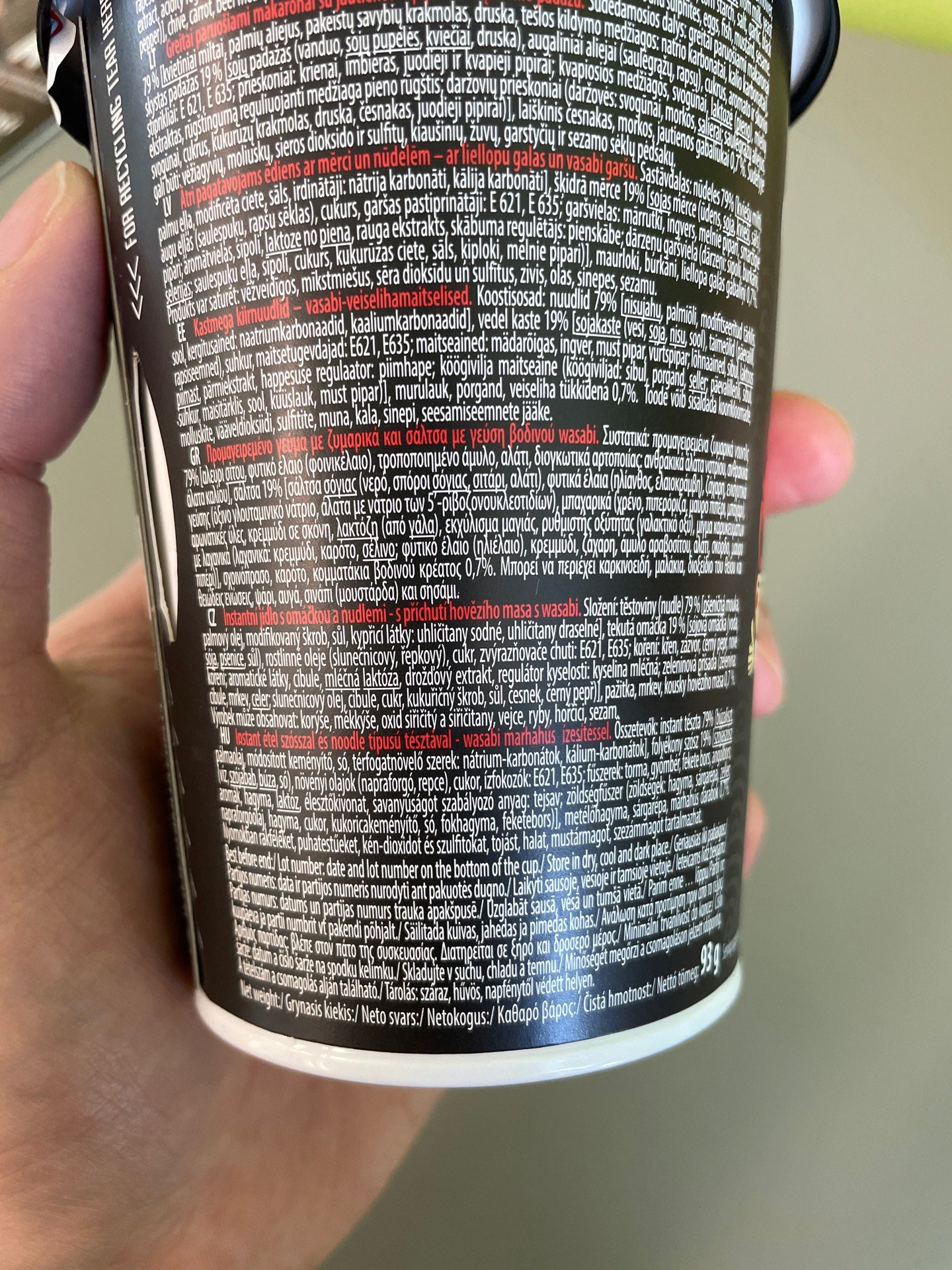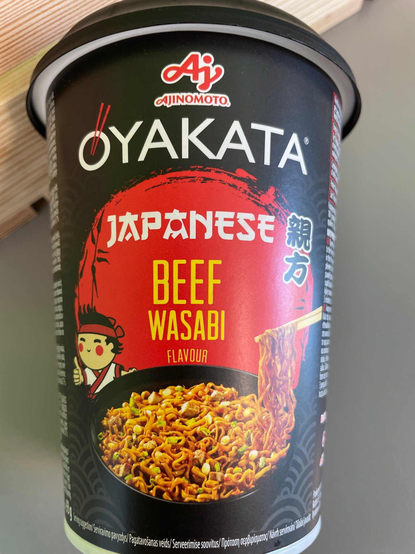 Instatní jídlo s omáčkou s nudlemi - s příchutí hovězího masa a wasabi.