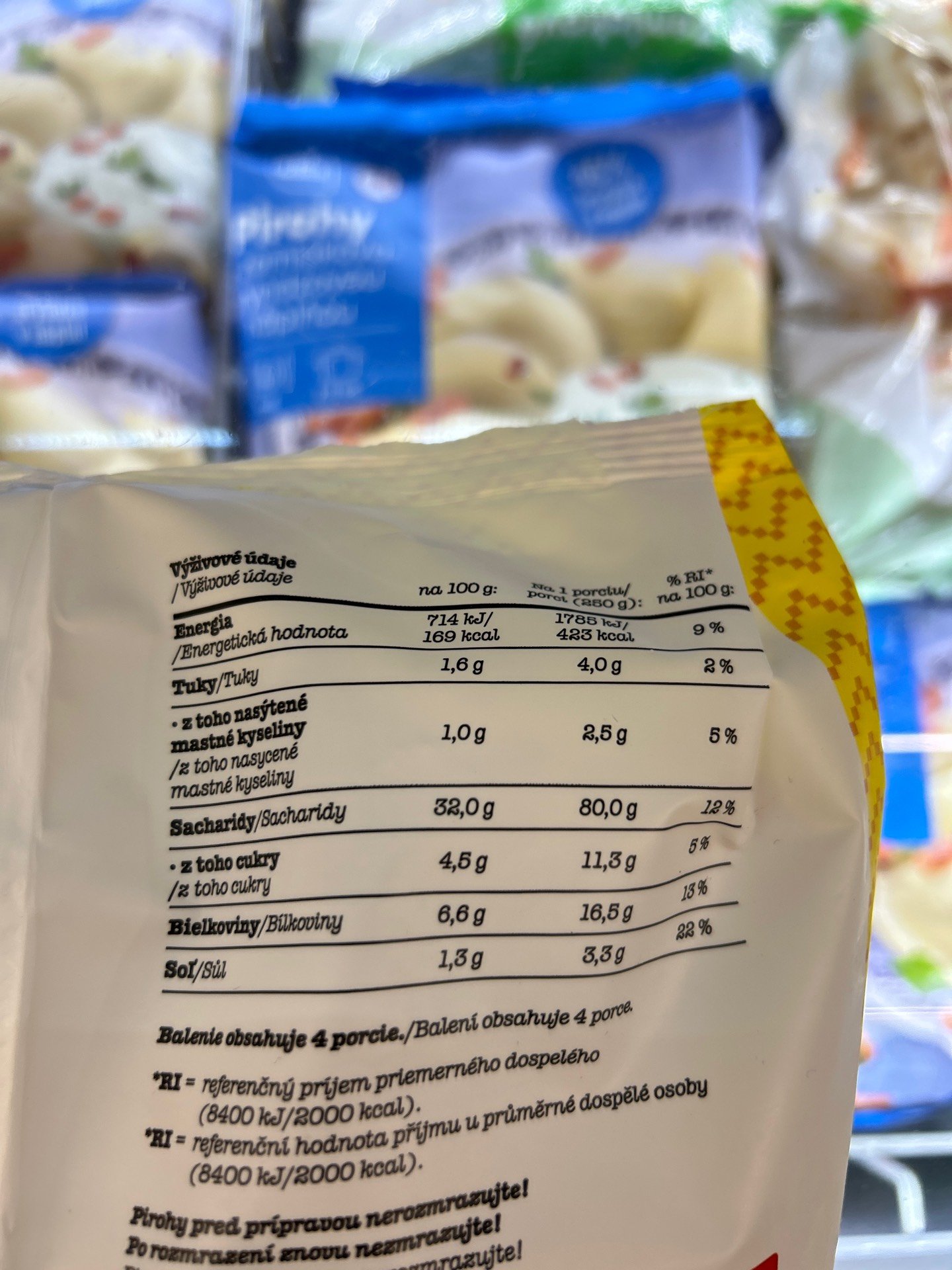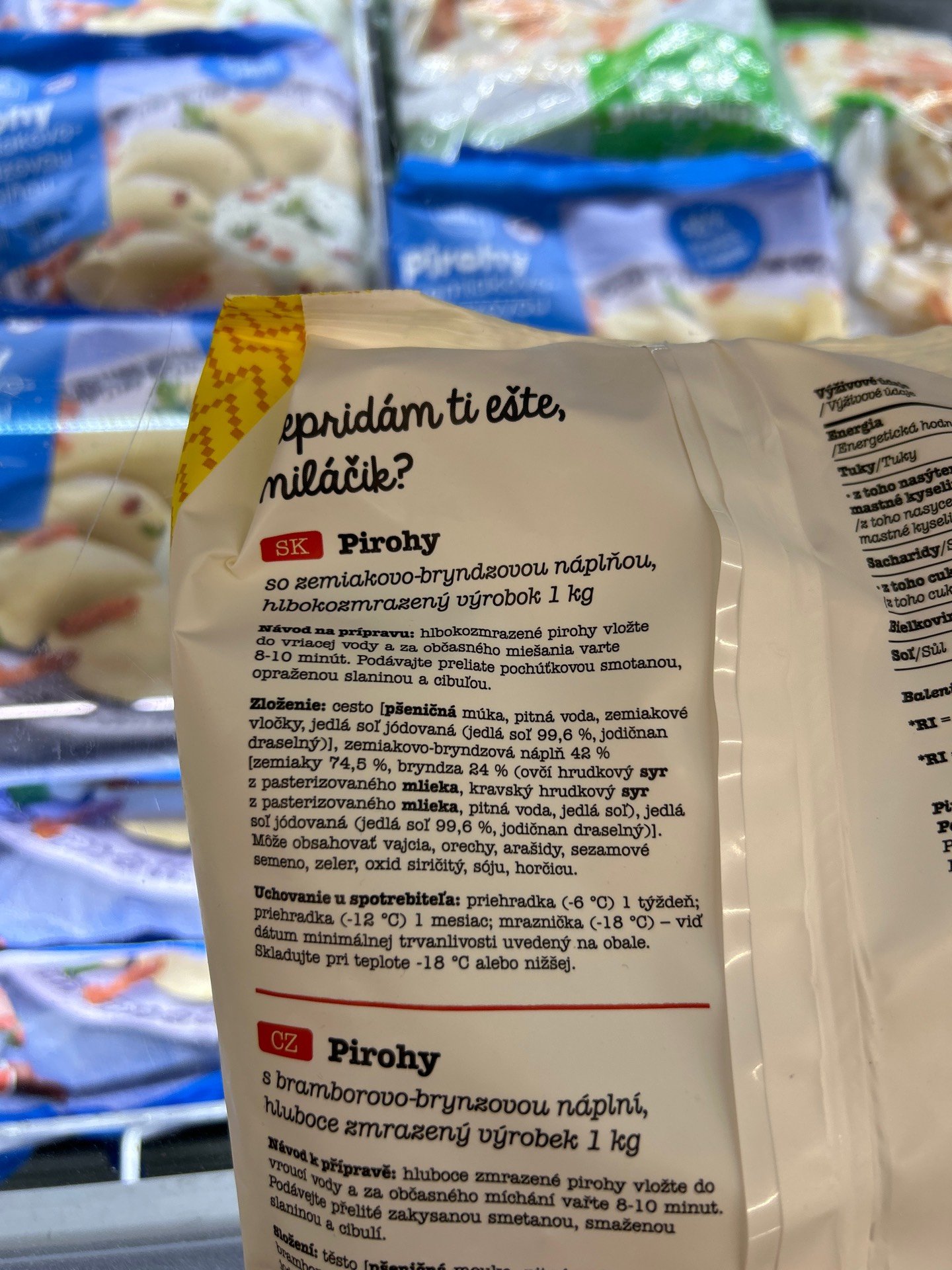 S bramborovo - brynzovou náplní hluboce zmrazený výrobek.