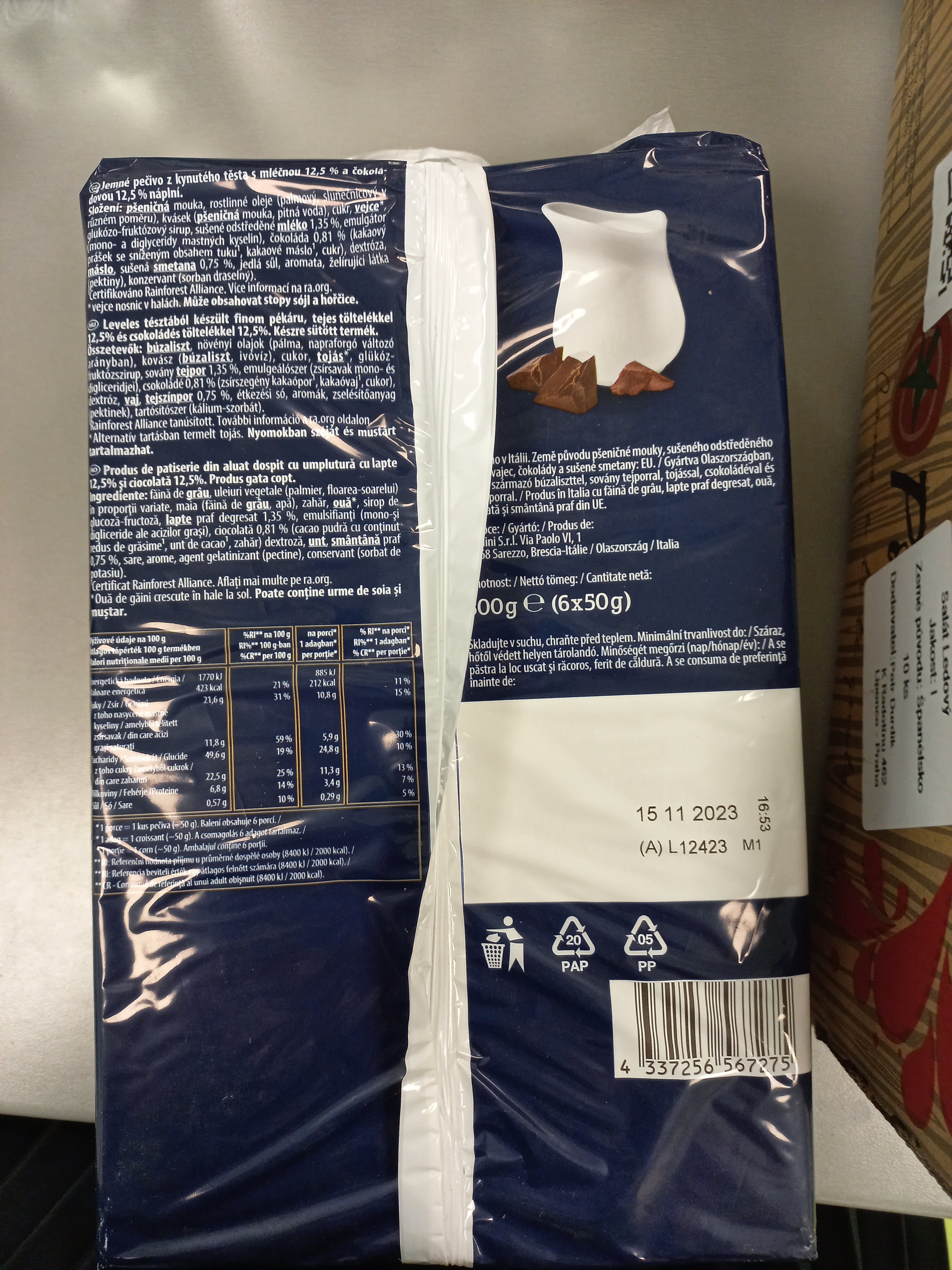 Jemné pečivo z kynutého těsta s mléčnou 12,5% a čokoládovou 12,5% náplní.