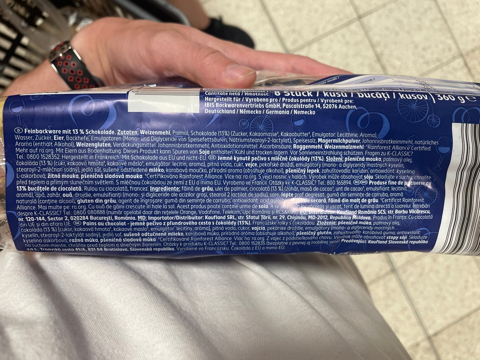 Jemné kynuté pečivo s 13% mléčné čokolády.