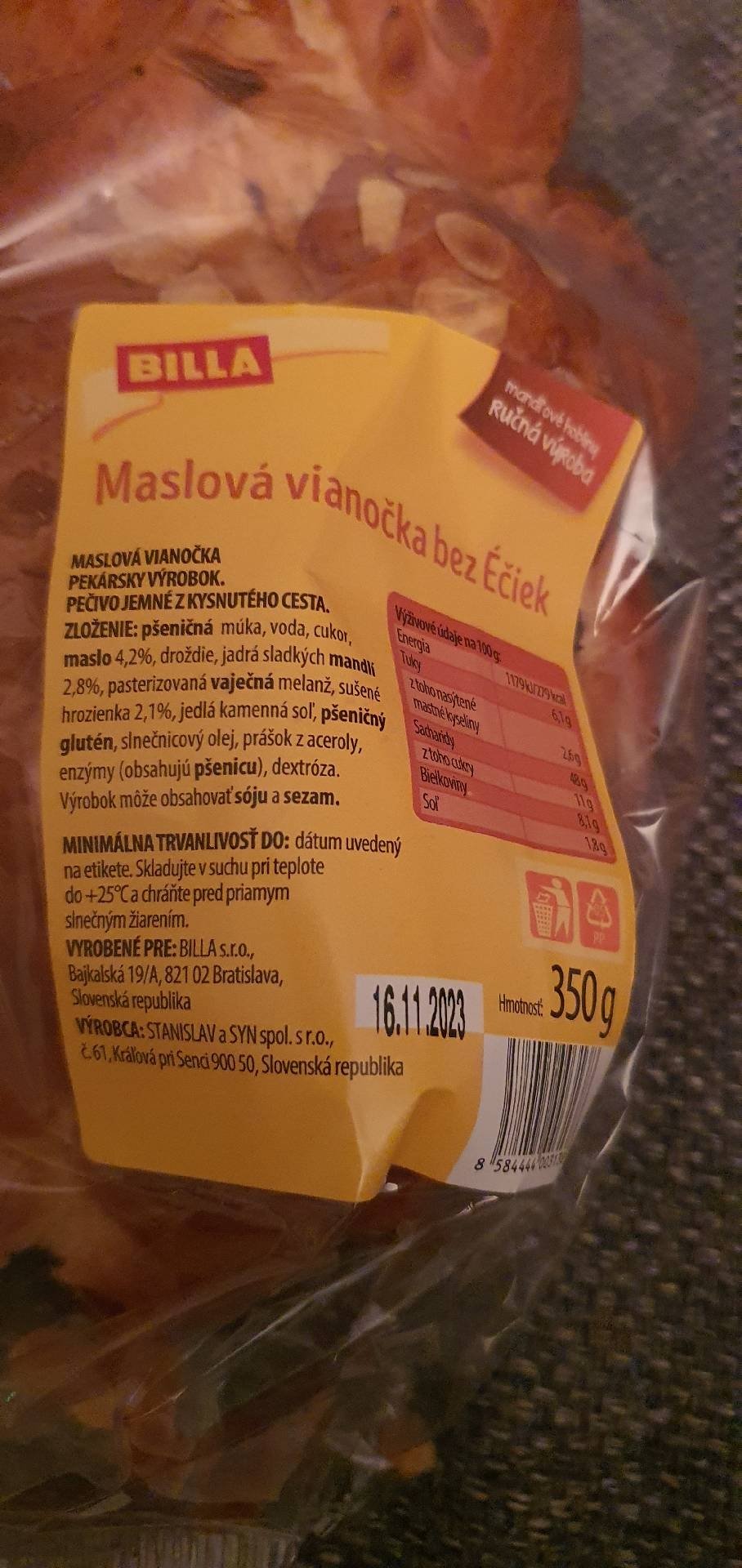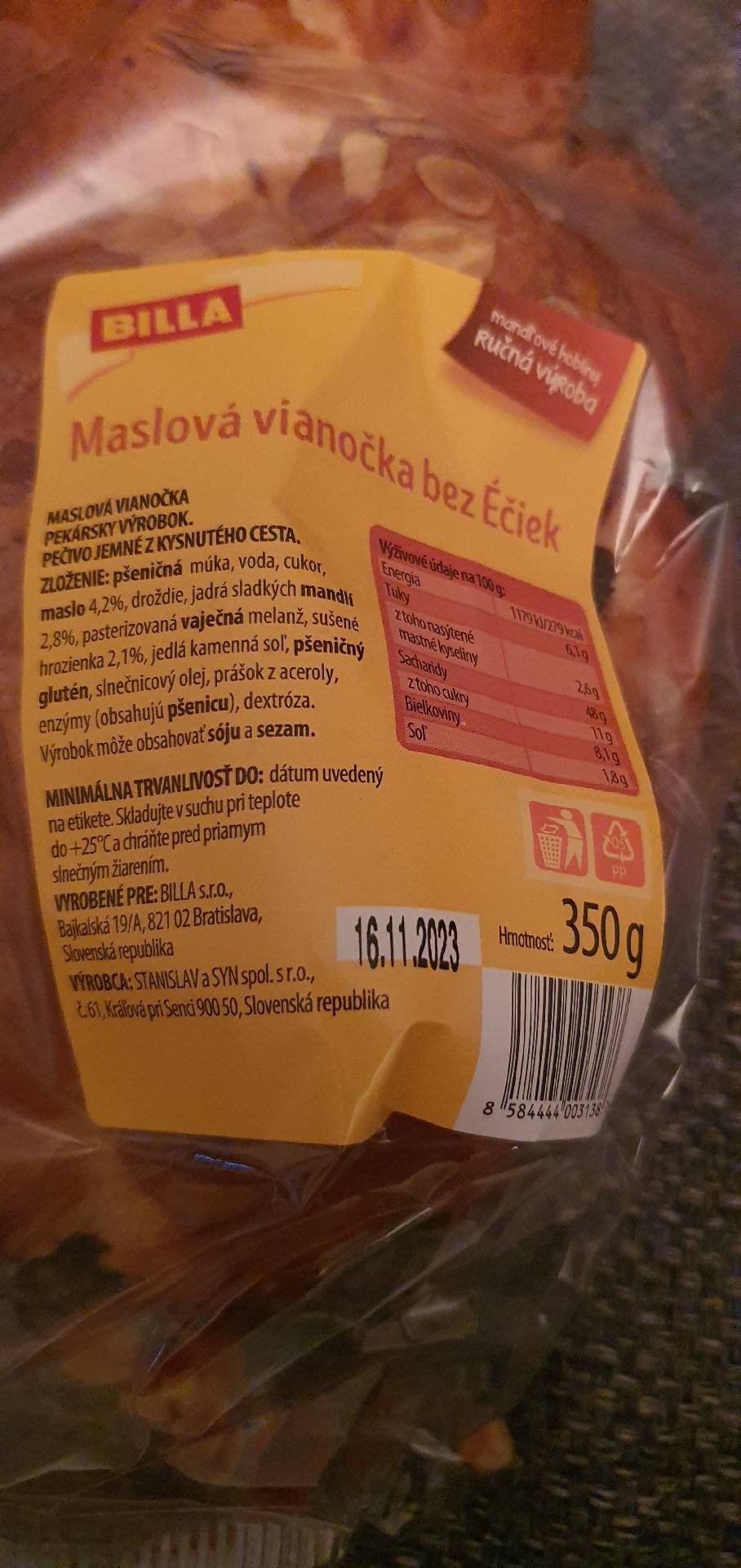 FÉR potravina > Databáze potravin > Jemné pečivo > Vánočka s hrozinkami, sypaná mandlemi