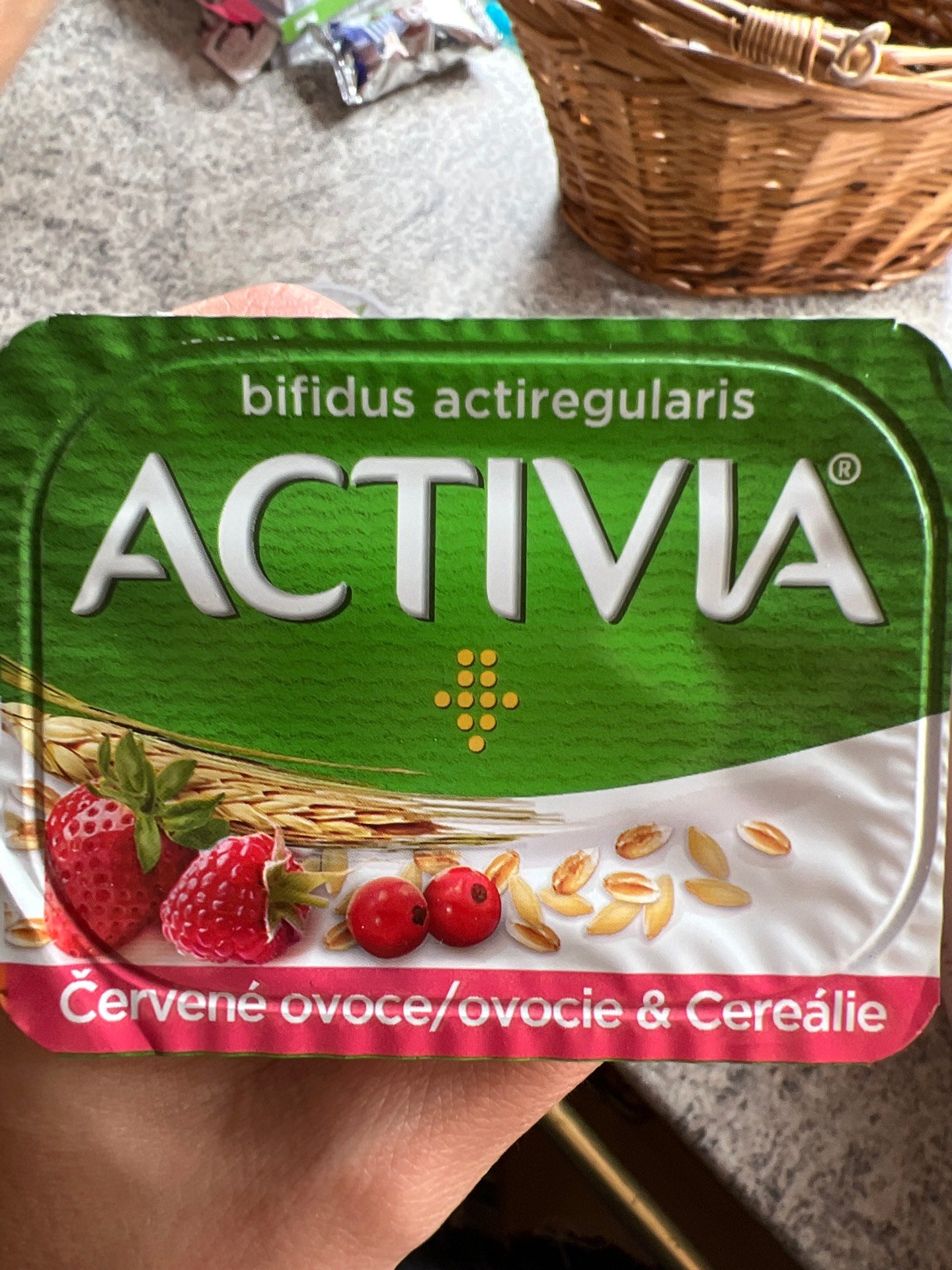 Activia jogurt s červeným ovocem, cereáliemi a bifidokulturou