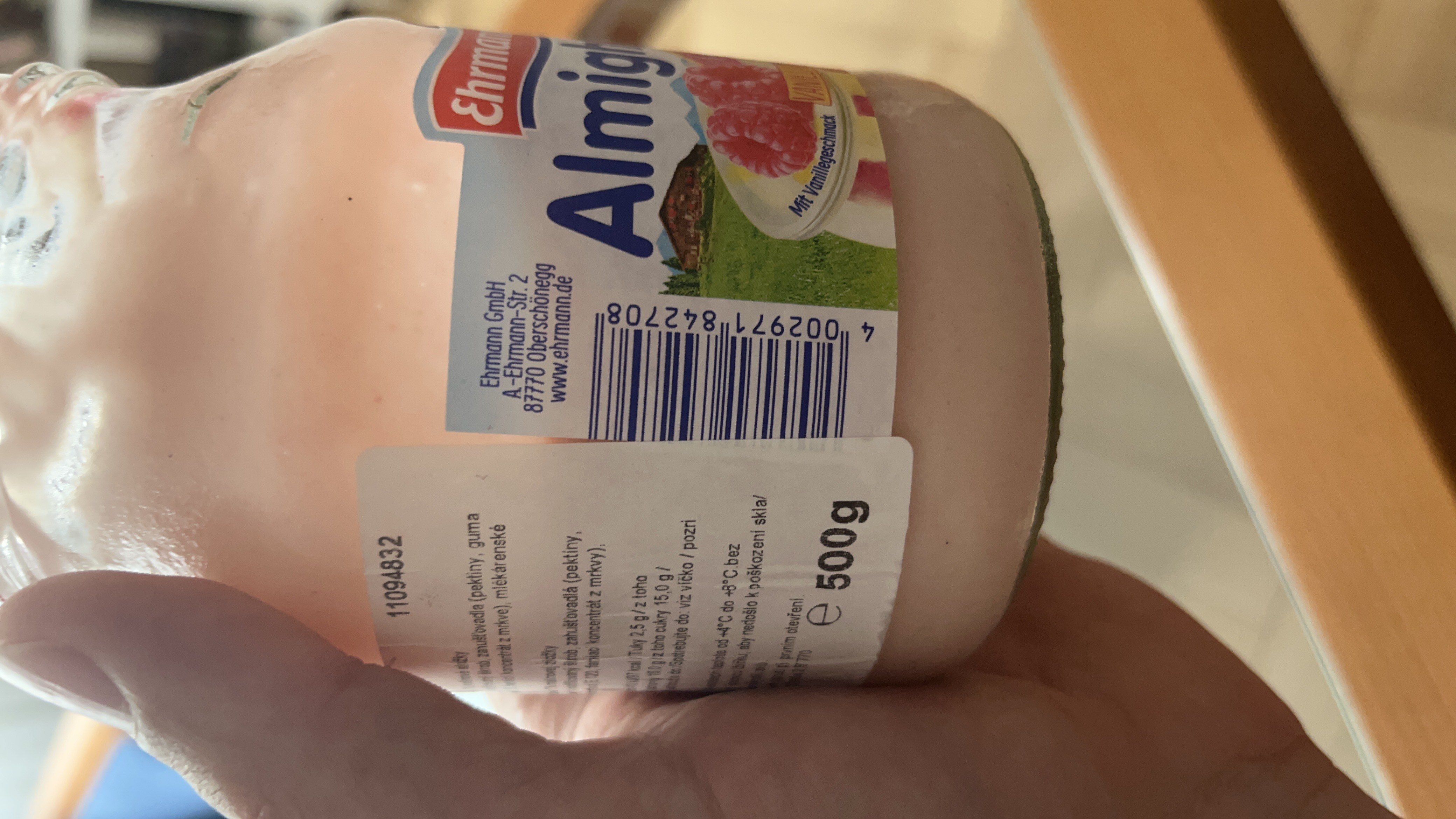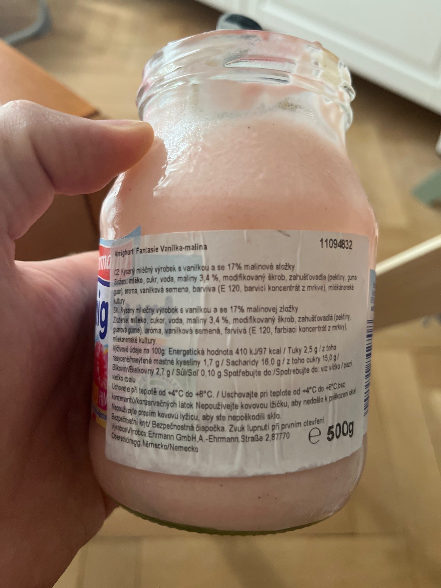 Kysaný mléčný výrobek s vanilkou a se 17% malinové složky.