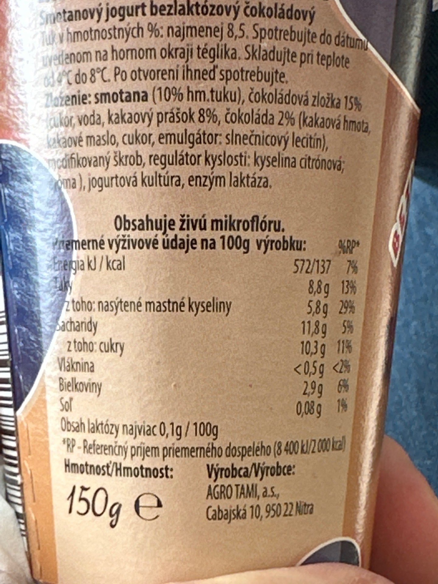 Smetanový jogurt bezlaktózový čokoládový.