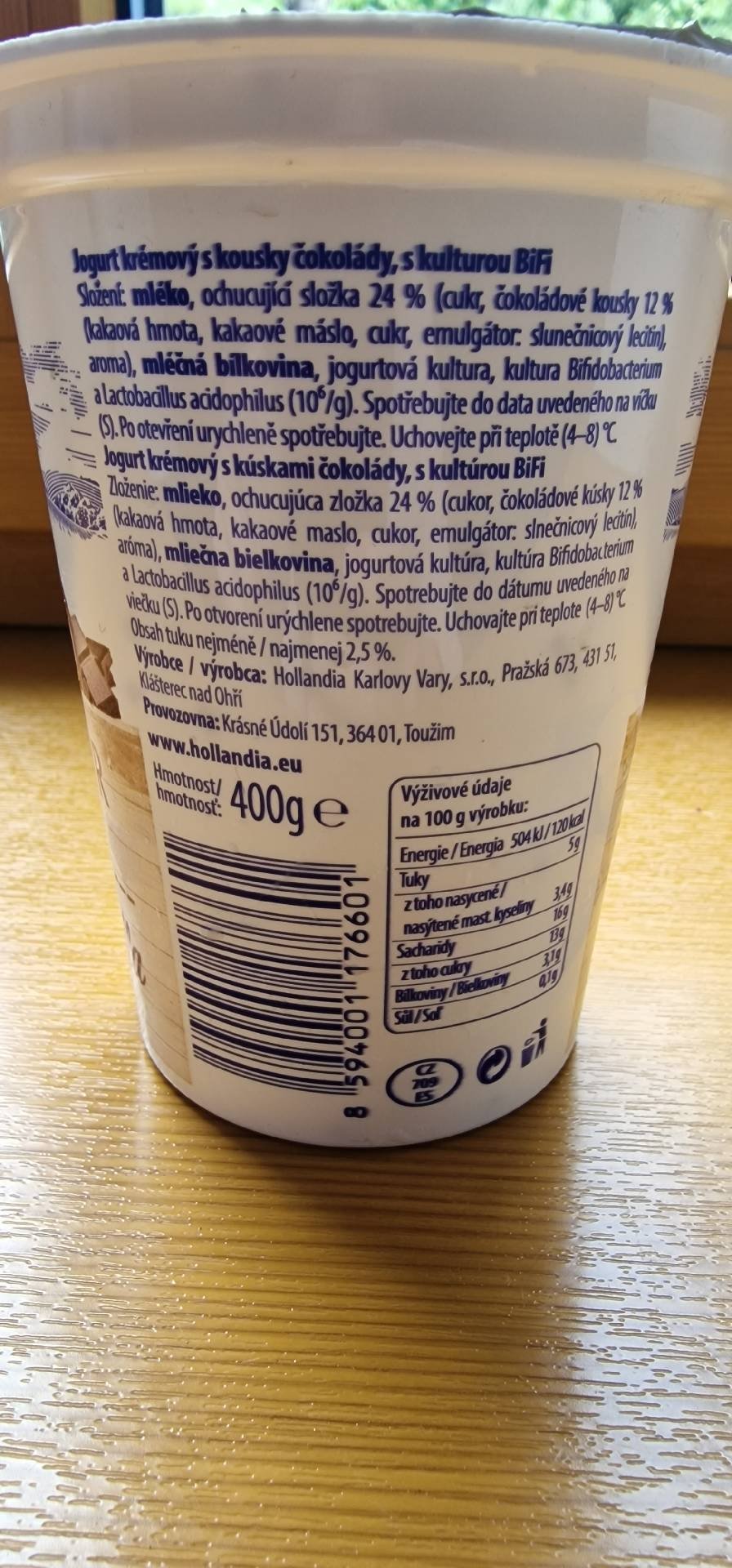 Jogurt krémový s kousky čokolády, s kulturou Bifi.