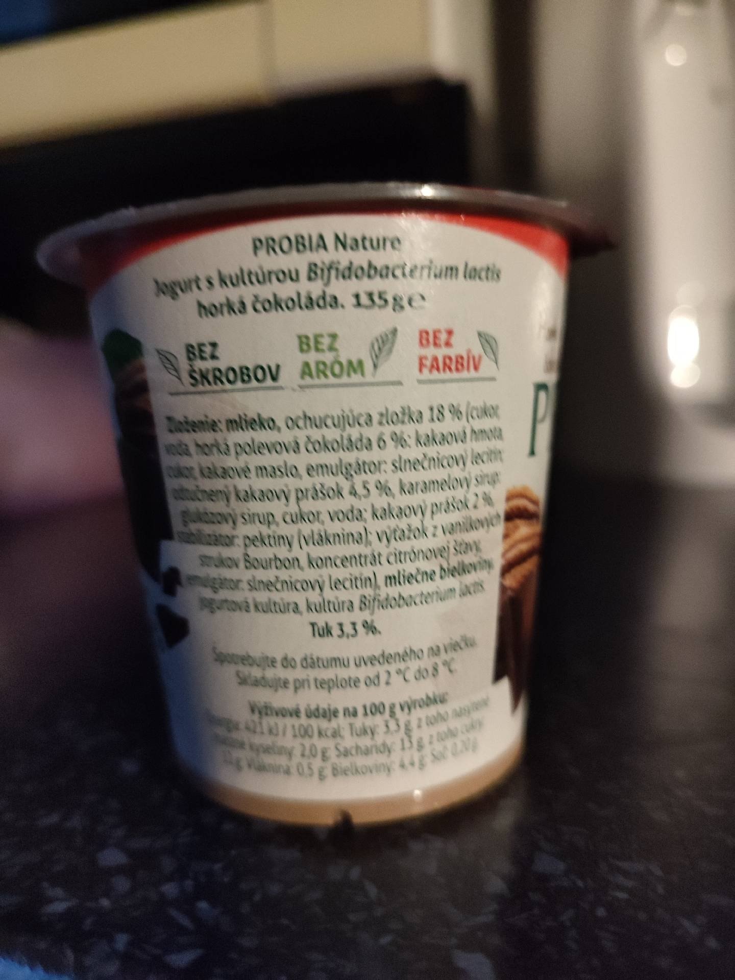 Jogurt s kulturou Bifidobacterium lactis hořká čokoláda.