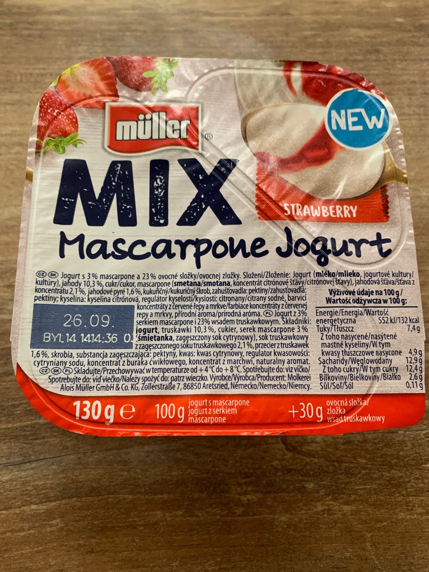Jogurt s 3% mascarpone a 23% ovocné složky.