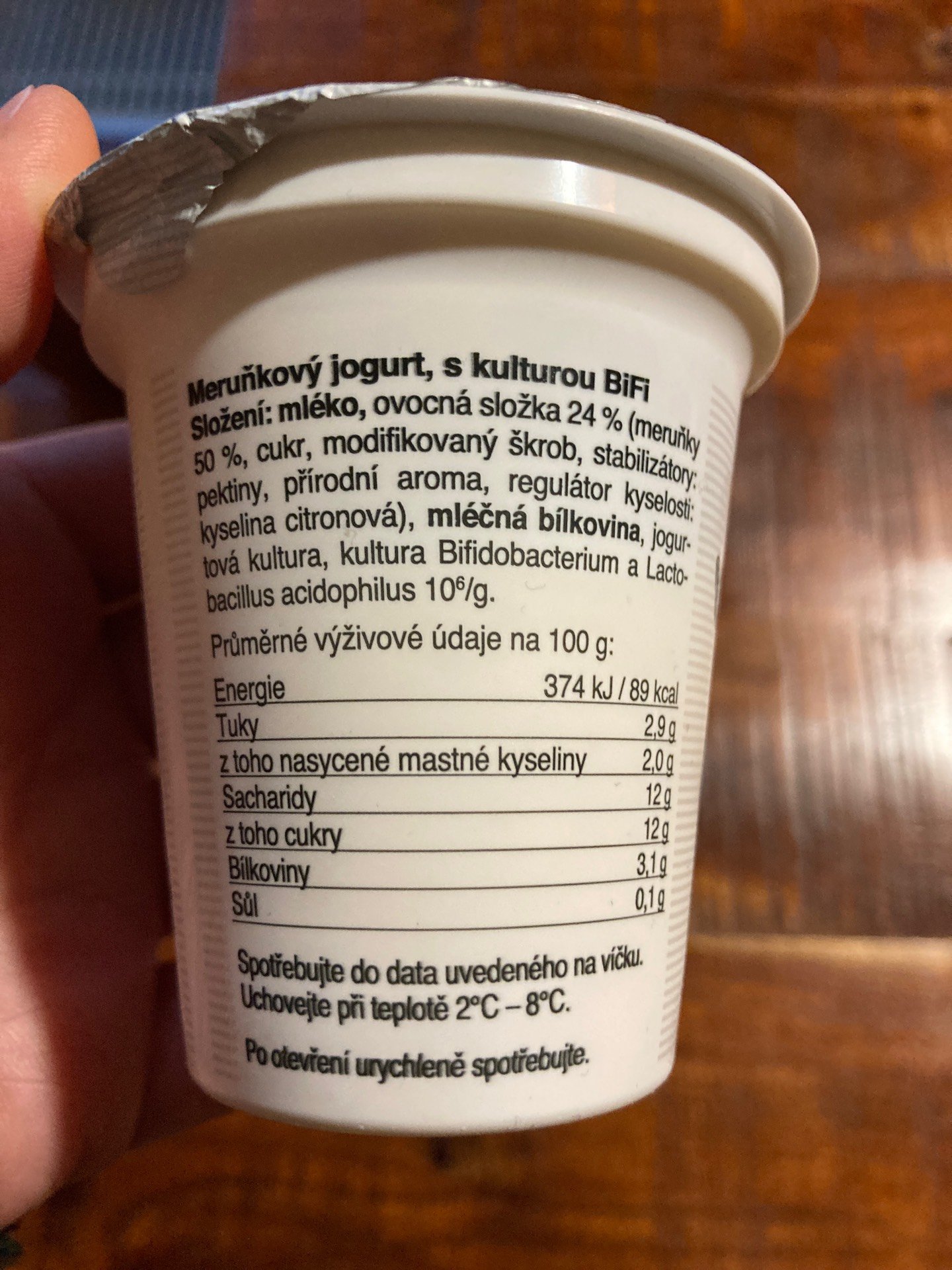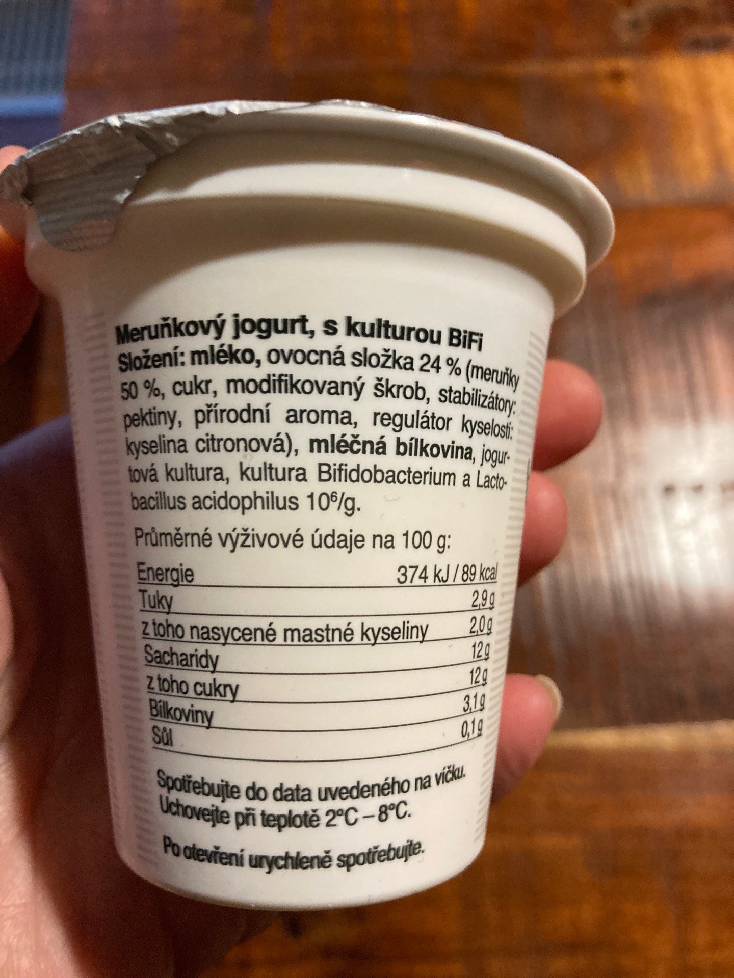 Meruňkový jogurt, s kulturou BiFi.