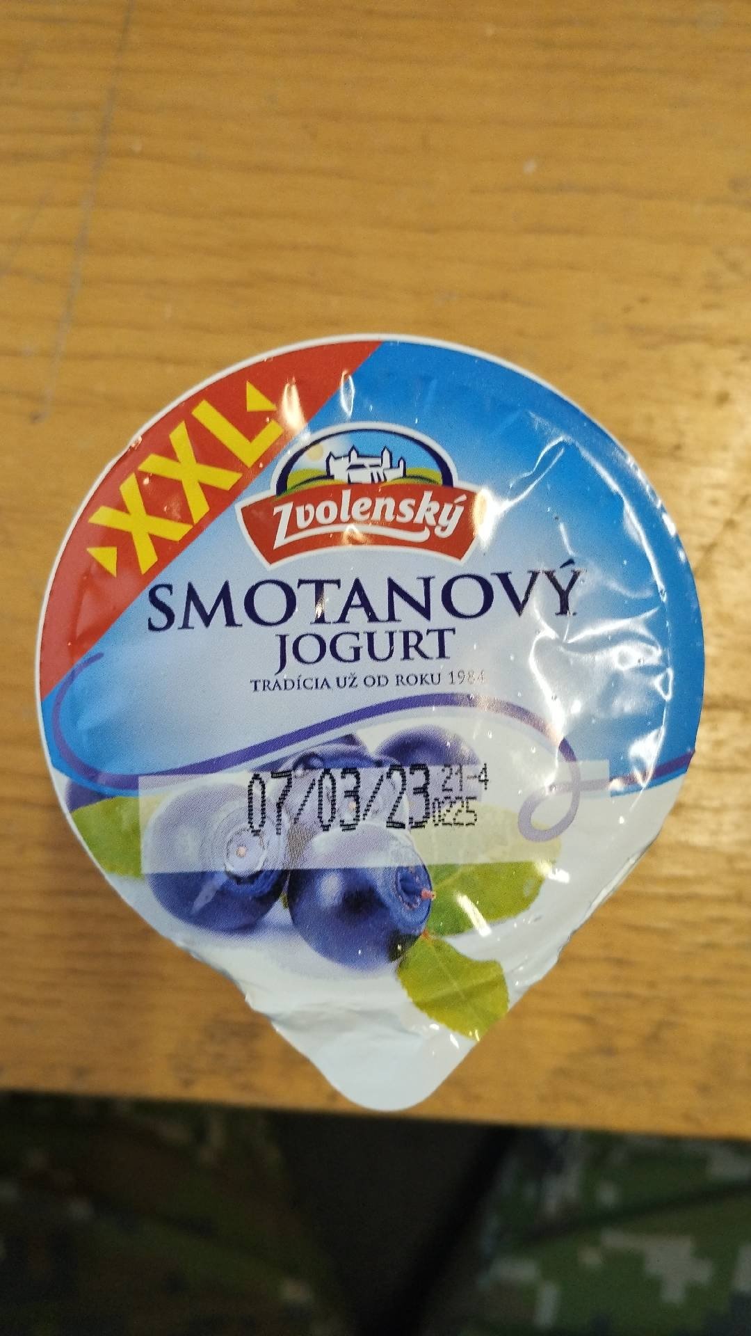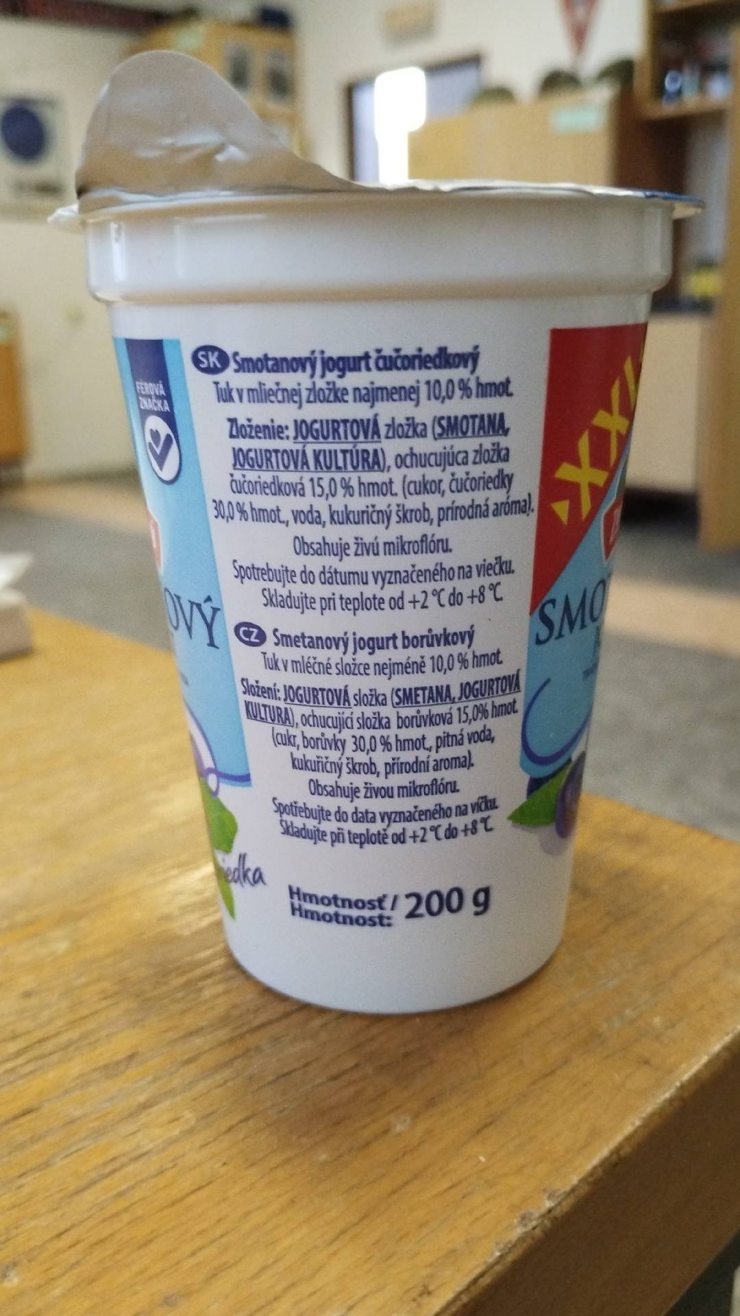 Smetanový jogurt borůvkový.