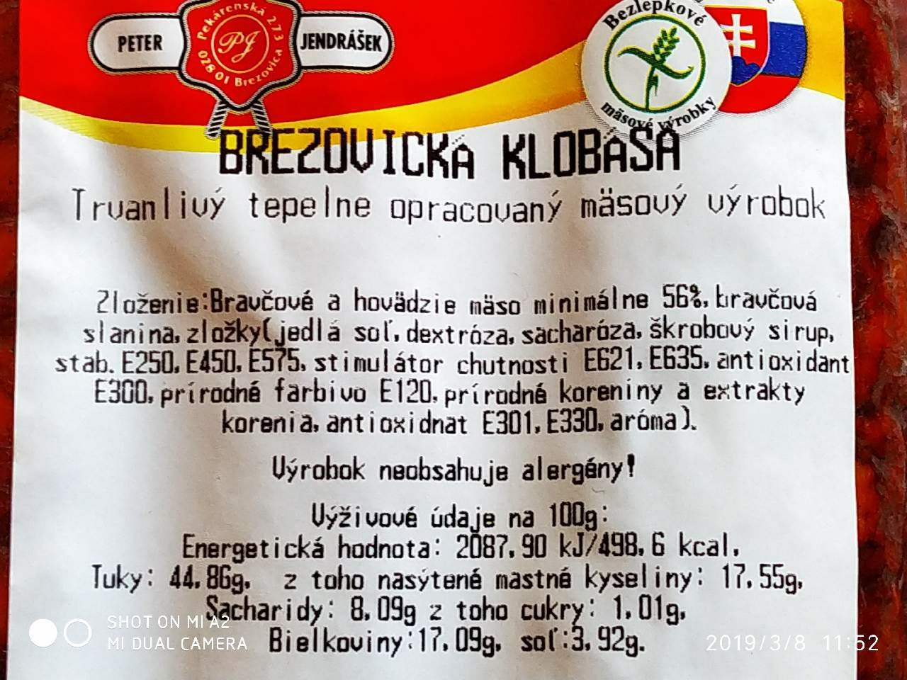 Trvanlivý tepelně opracovaný masový výrobek. Vakuově baleno. Výrobek neobsahuje alergeny.